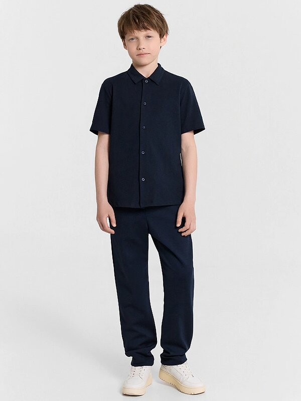 Стильная школьная рубашка для мальчиков — незаменимый элемент повседневного гардероба. Модель с прямым силуэтом отличается классическим дизайном с воротником. Короткие рукава обеспечивают комфорт и практичность в носке. Спереди рубашка застегивается на пуговицы и петли, добавляя ей аккуратный вид. Высококачественные материалы гарантируют долговечность и сохранение первозданного вида на протяжении длительного времени. Эта рубашка универсальна и сочетается как с брюками, так и с джинсами и другими детскими вещами. Она станет отличным выбором для прогулок, в школу или на различные мероприятия.