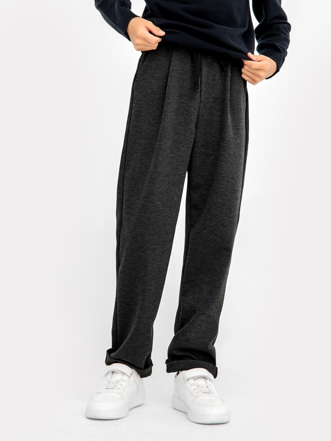 Брюки прямого силуэта с классической посадкой на талии для мальчиков. В поясе – эластичная тесьма и шнурок-завязка, который позволяет регулировать ширину в талии. Есть удобные боковые карманы. Гульфик – имитация. Штанины оканчиваются подворотами. Рекомендуем для школы и мероприятий, предполагающих официальный стиль одежды.