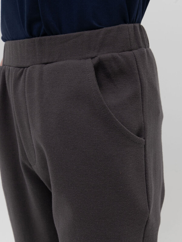 Школьные брюки для мальчика. Выглядят как классические: карманы, детали, покрой. Но сшиты из плотного трикотажа поэтому очень удобные и комфортные. Хороши на любую фигуру, объем в поясе регулируется шнурком. Не передавливают живот и дают возможность свободно дышать. Для создания крутого образа, достаточно просто подвернуть брюки. Можно покупать на вырост. Сочетается с любым верхом как в школьных, так и в повседневных образах.