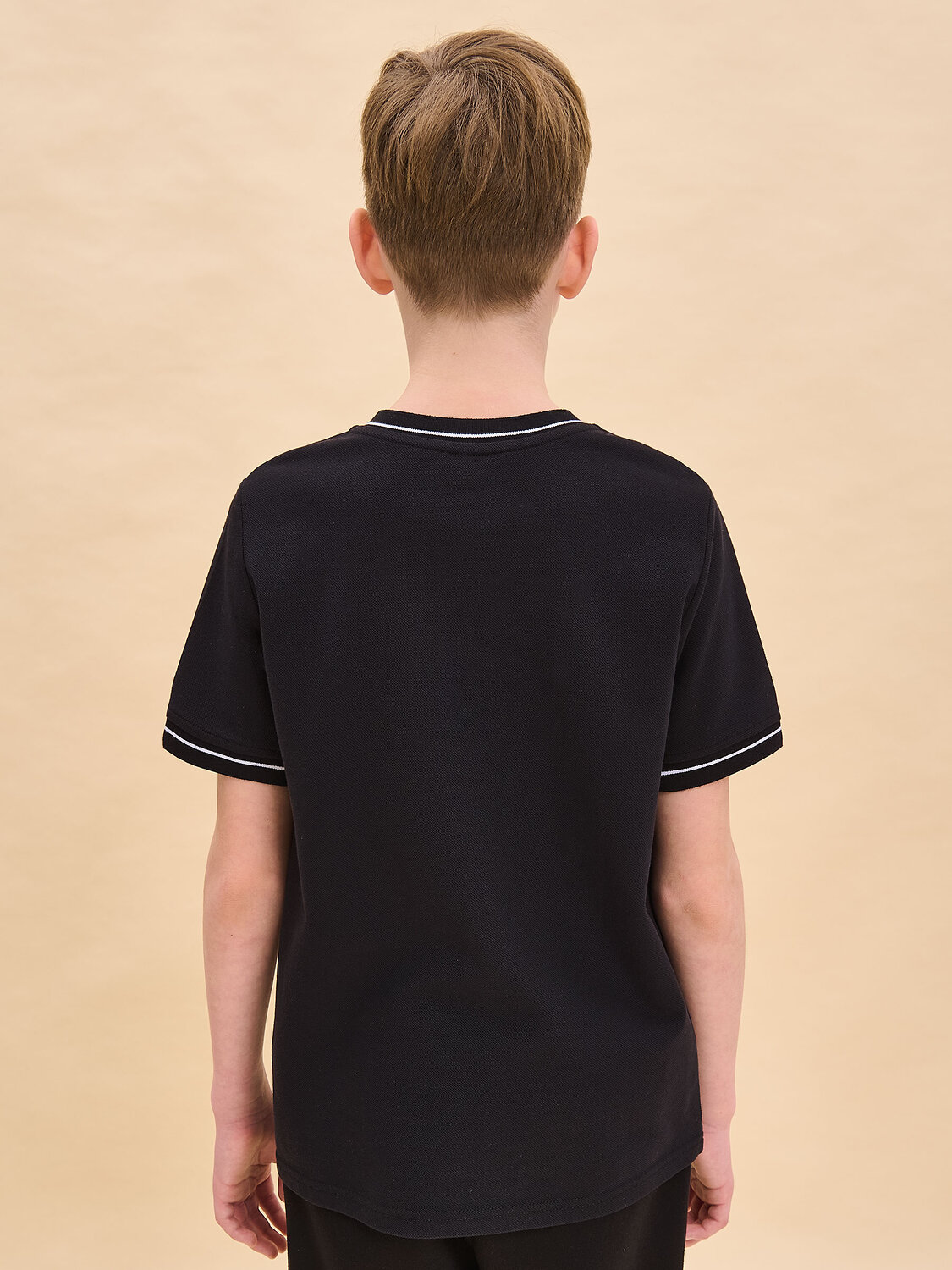 Базовая футболка хенли для мальчика. Подходит в качестве школьной одежды. Горловина отделана декоративной эластичной рибаной, которая долго сохраняет форму, устойчива к частым стиркам, не растягивается. Застёжка под горловиной на три кнопки — джемпер школьный удобно надевать и снимать. Трикотажная футболка выполнена из 100% высококачественного хлопка. Благодаря натуральному составу ткани пике изделие мягкое, воздухопроницаемое и очень комфортное. Не жарко даже самому активному ребёнку. На груди футболка базовая украшена лаконичным силиконовым принтом, устойчивым к многочисленным стиркам. Такие футболки на мальчика — хороший вариант одежды для школы. Модель представлена в нескольких универсальных расцветках — легко сочетать с любыми брюками, пиджаками, джемперами. Рекомендуемый уход: стирать при температуре не выше 30 °С, без предварительного замачивания, с изнанки, расправить перед сушкой. Выбирайте нужный размер по таблице размеров на фото. Цвет товара на экране вашего устройства может отличаться от цвета изделия вживую.