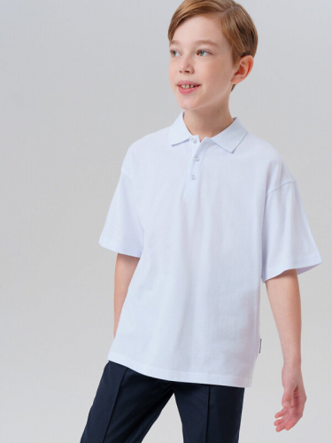Идеальный вариант для школы – стильное и практичное белое поло с коротким рукавом станет универсальной основой школьного гардероба. Модель выполнена из качественного хлопкового пике, что обеспечивает комфорт в течение всего учебного дня.