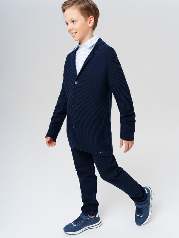 Отличный вариант для повседневной носки и школьных будней. Качественные материалы и продуманный крой делают этот кардиган практичным выбором для мальчика-школьника.