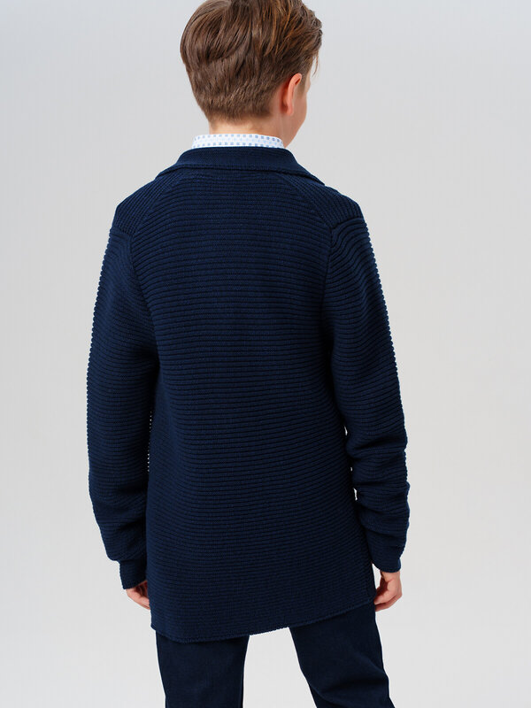 Стильный школьный темно-синий кардиган на пуговицах для мальчика-подростка.