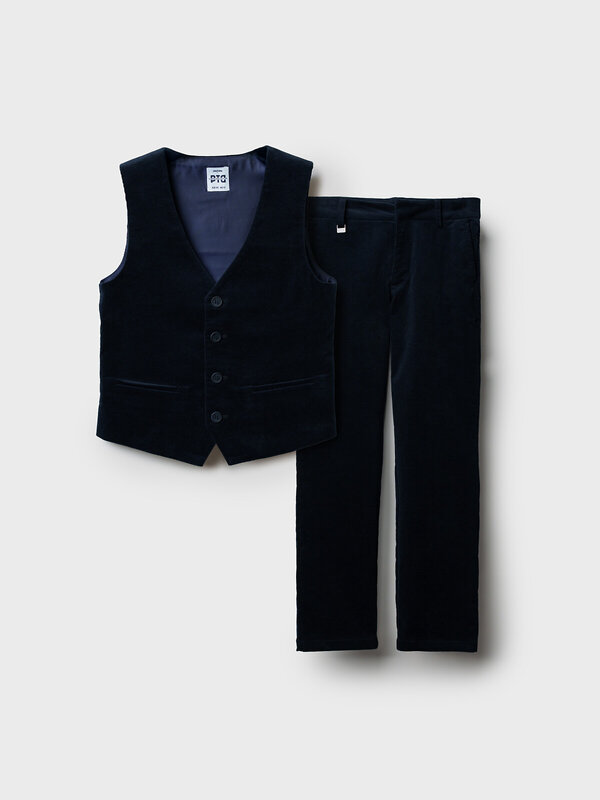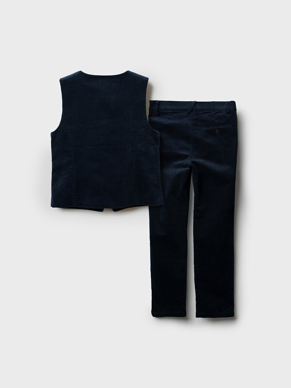 Этот элегантный набор в темно-синем цвете отлично подойдет для школьника и станет универсальным вариантом в школу или для повседневной носки.
