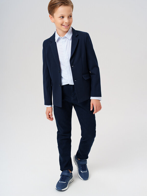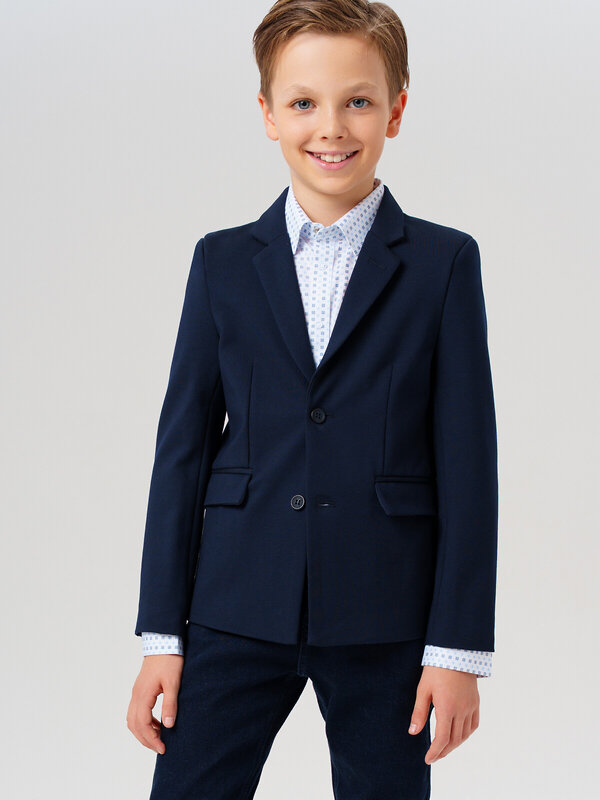 Стильный и лаконичный школьный пиджак для юного джентльмена – идеальный выбор для торжественных мероприятий и повседневной носки в школу. Модель выполнена в классическом крое с удобной посадкой regular, которая обеспечивает комфорт в течение всего учебного дня.