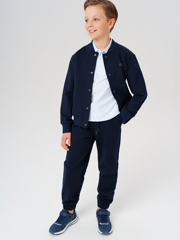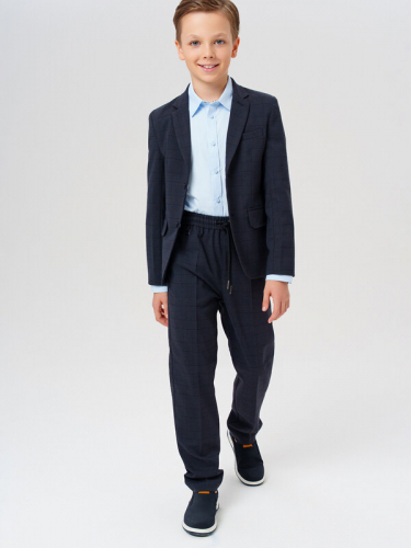 Этот элегантный костюм в темно-синем цвете отлично подойдет для школьника и станет универсальным вариантом в школу или для повседневной носки.