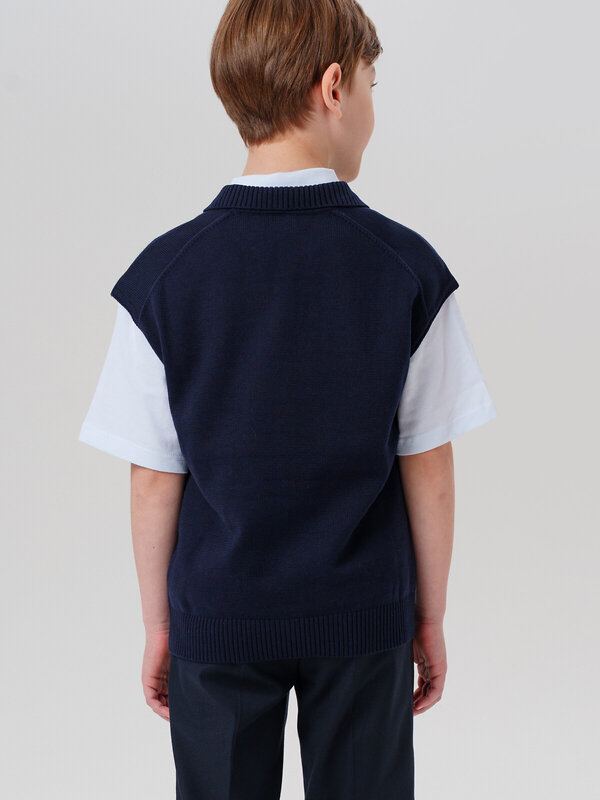 Отличный вариант для повседневной носки и школьных будней. Качественные материалы и продуманный крой делают этот жилет практичным выбором для мальчика-школьника.