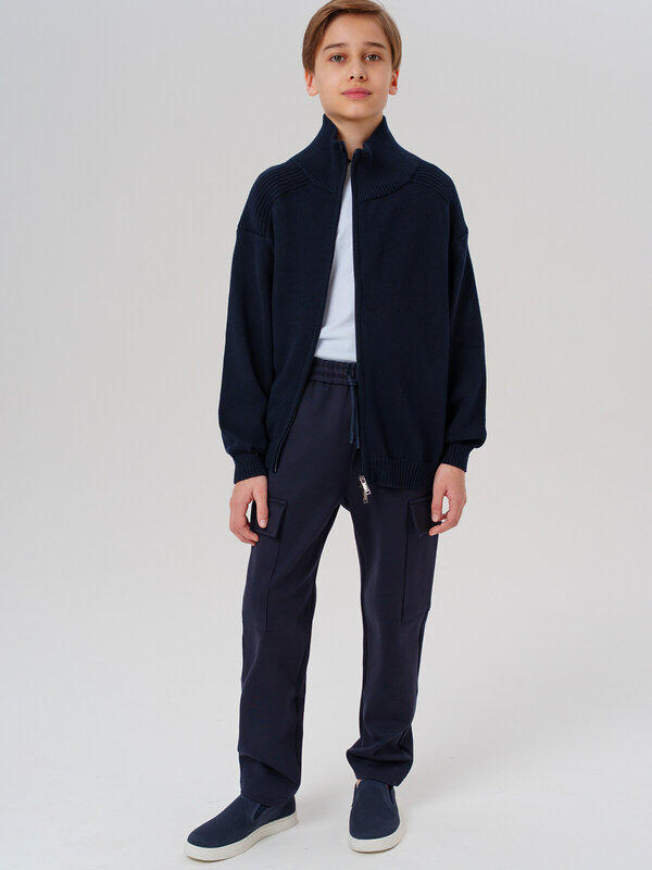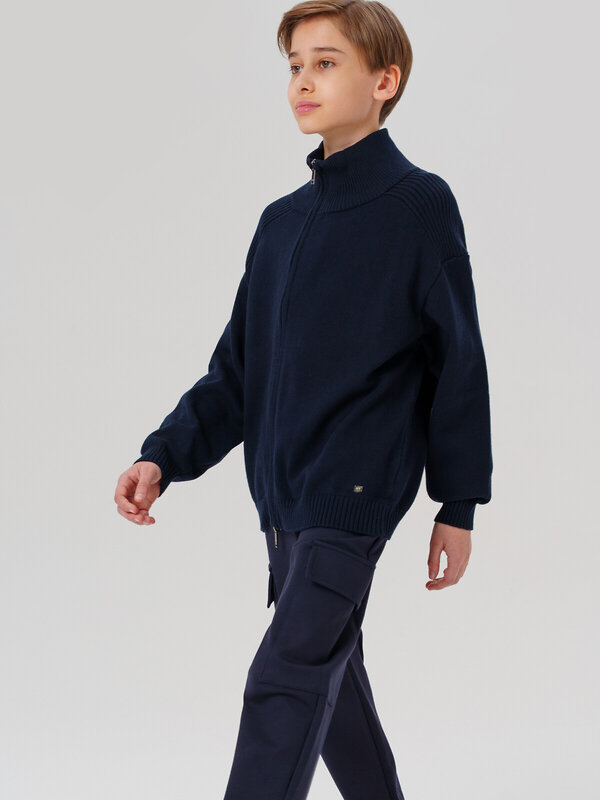 Стильный школьный темно-синий кардиган для мальчика-подростка.