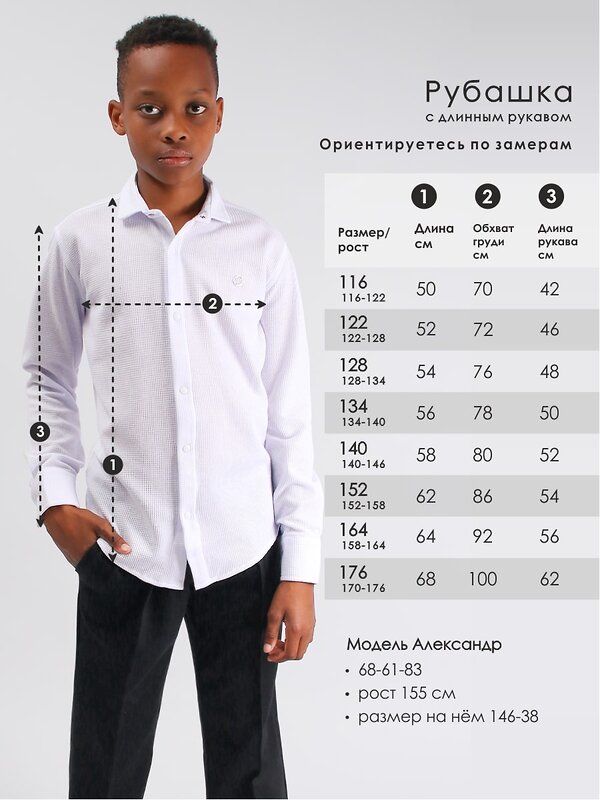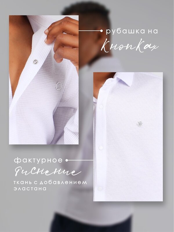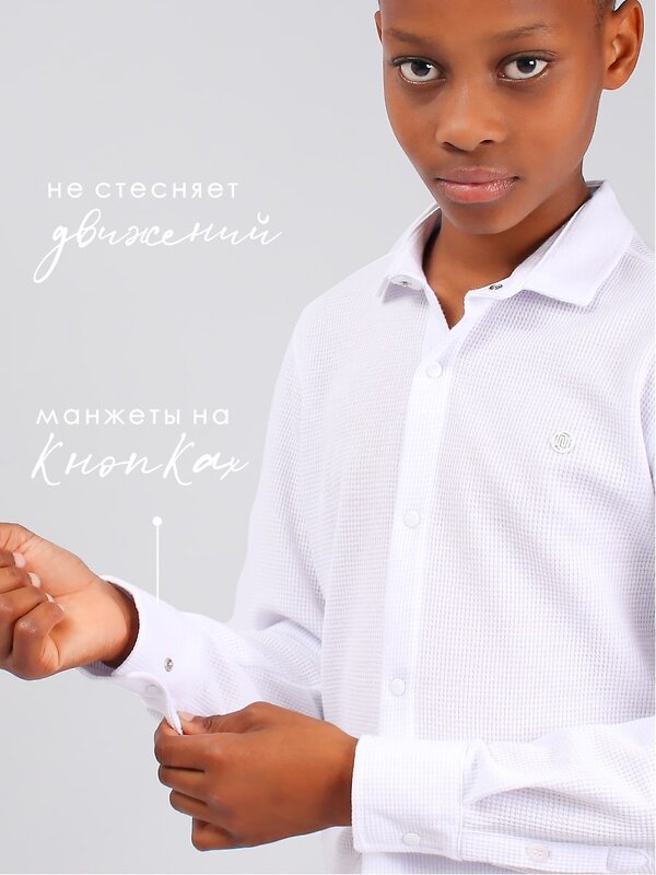 Классическая рубашка для мальчика Соль&Перец прямого силуэта, на заклёпках. Модель идеально сочетается с брюками любого фасона и подойдет как для школы, так и для торжественного мероприятия.