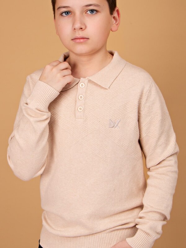 Теплый джемпер для мальчика. Спереди модель декорирована рельефным узором. Мягкий, вязаный трикотаж не сковывает движений, обладает хорошей гигроскопичностью и воздухопроницаемостью, приятный к телу. Классический, однотонный джемпер - это незаменимая вещь в гардеробе каждого мальчика.