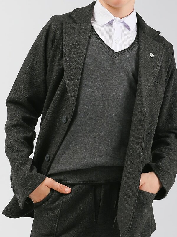 Пиджак для мальчика Соль&Перец. Модель идеально сочетается с брюками любого фасона и подойдет как для школы, так и для торжественного мероприятия.