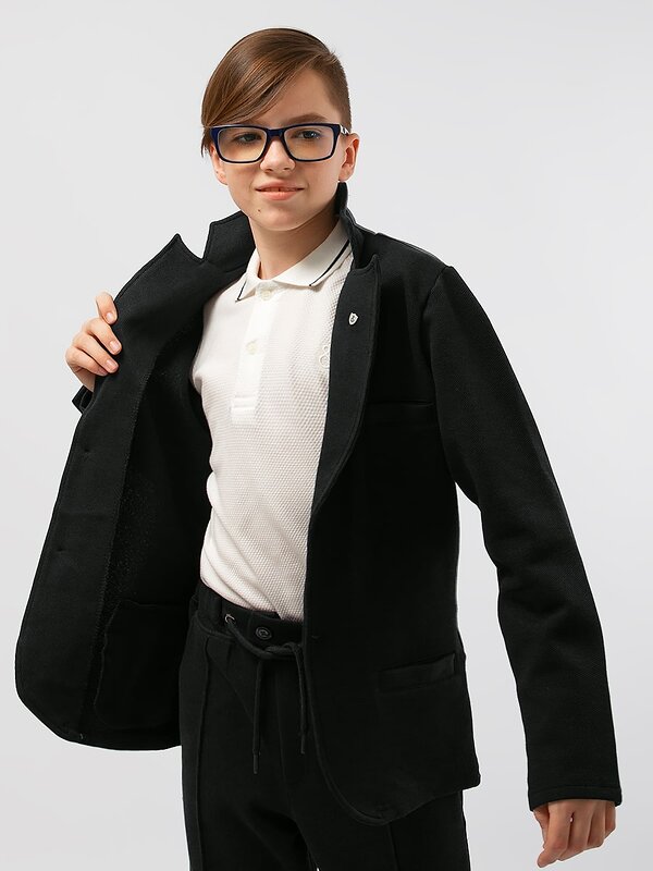 Пиджак для мальчика Соль&Перец. Модель идеально сочетается с брюками любого фасона и подойдет как для школы, так и для торжественного мероприятия.