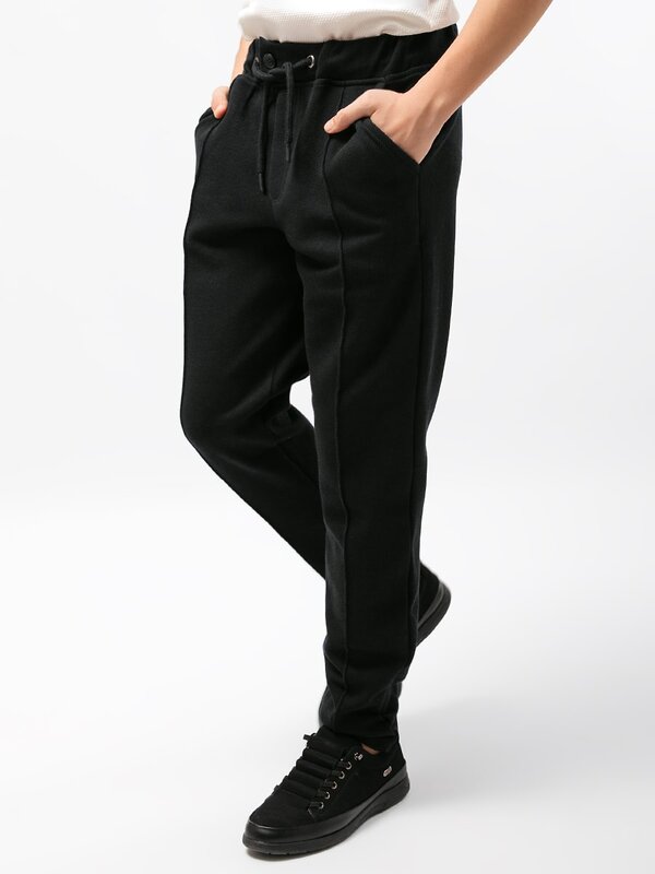 Брюки для мальчика Соль&Перец. Модель на широкой резинке с кулиской и боковыми карманами, с прошитыми стрелками, выполнена из плотного трикотажа. Идеально сочетается с джемперами любого фасона и подойдет как для школы, так и для торжественного мероприятия.
