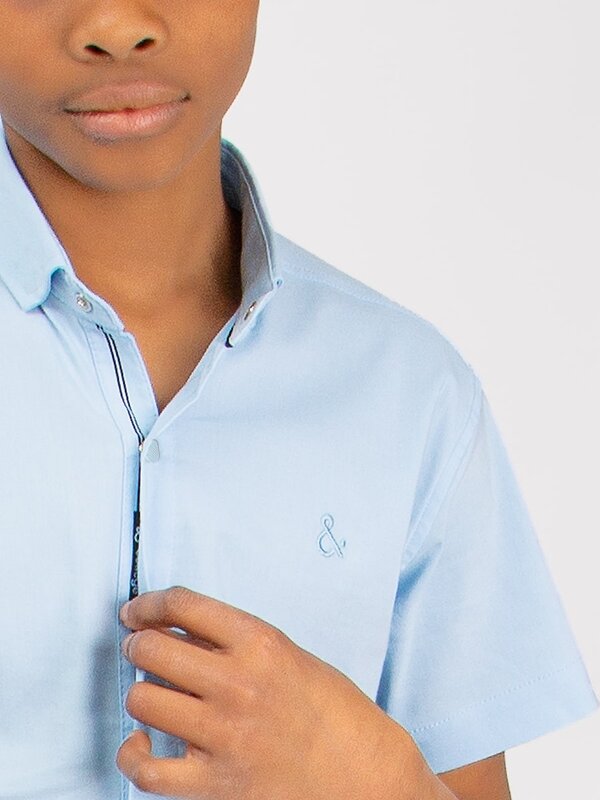 Классическая рубашка для мальчика Соль&Перец прямого силуэта, на заклёпках. Рубашка выполнена из 100% хлопка для лёгкости и комфорта в повседневной носке. Рубашка идеально сочетается с брюками любого фасона и подойдет как для школы, так и для торжественного мероприятия. На груди вышивка логотип бренда.