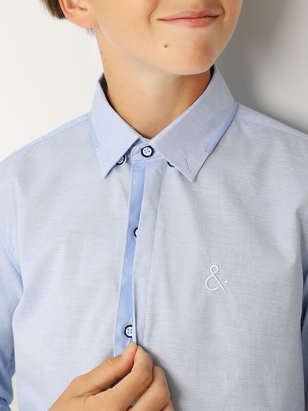 Рубашка для мальчика Соль&Перец прямого кроя, на пуговицах, с потайной планкой. Рубашка выполнена из натурального хлопка премиального качества. Рубашка идеально сочетается с брюками любого фасона и подойдет как для школы, так и для торжественного мероприятия.