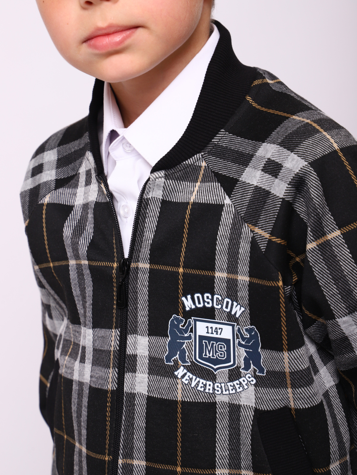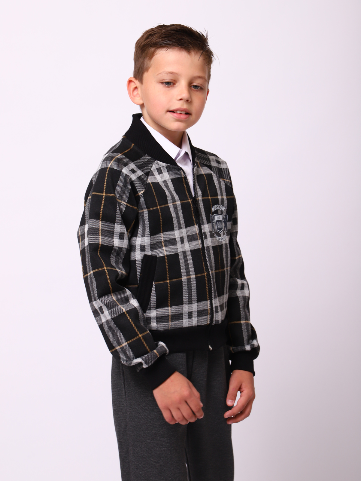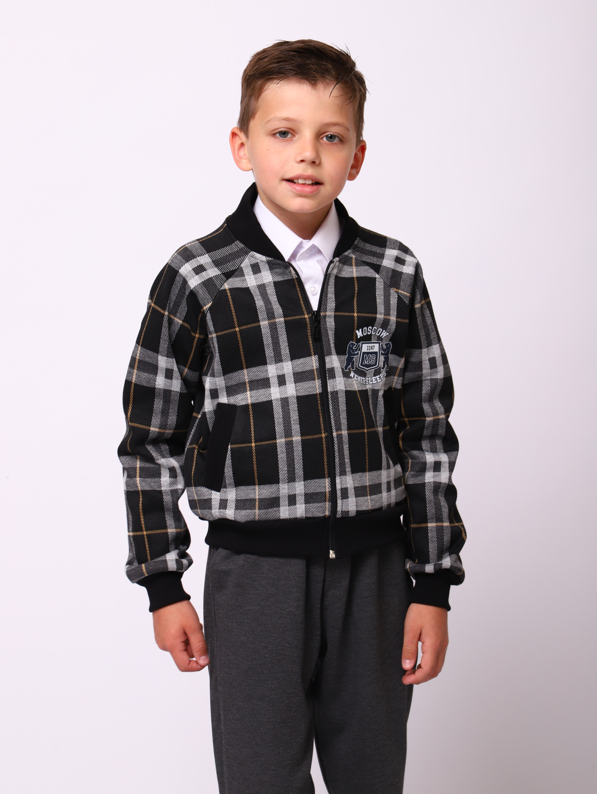 Модный школьный клетчатый бомбер для мальчиков и девочек. Детская толстовка для мальчика сшита из плотного трикотажного полотна. Подростковый жакет на молнии, свободного кроя с длинными рукавами. Манжеты легкой школьной куртки, ворот и низ выполнены из плотной широкой резинки и служат дополнительной защитой от ветра. Школьный бомбер с боковыми карманами. Толстовка в клетку застегивается на молнию. Принт на груди. Трикотажный бомбер для мальчика востребован круглый год. Бомбер для поодростка будет прекрасно сочетаться с классическими вещами и со спортивными или с джинсовым стилем. Бомбер в клетку можно надеть на прогулку на экскурсию, в школу на уроки как школьную форму. На празднике, выпускном или линейке мальчик будет смотреться уместно в этой куртке классического стиля. Кофту на молнии можно одеть в путешествие на отдых к морю или в детский лагерь. Демисезонный бомбер в клетку востребован круглогодично! Школьная форма для мальчика не обходится без такой удобной школьной одеждв как эта кофта на молнии для мальчика. Окунитесь в мир современной моды с кофтой для мальчика