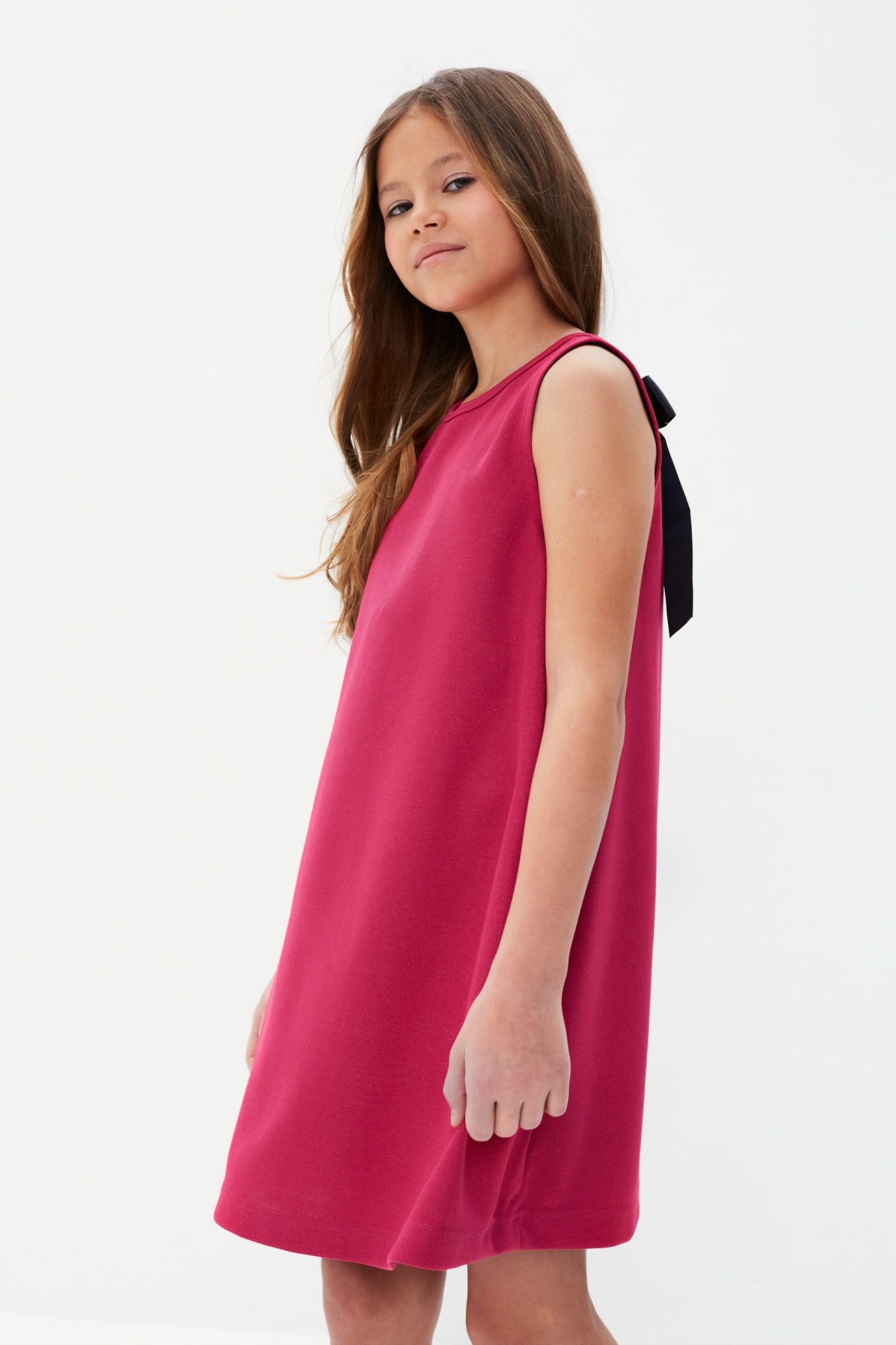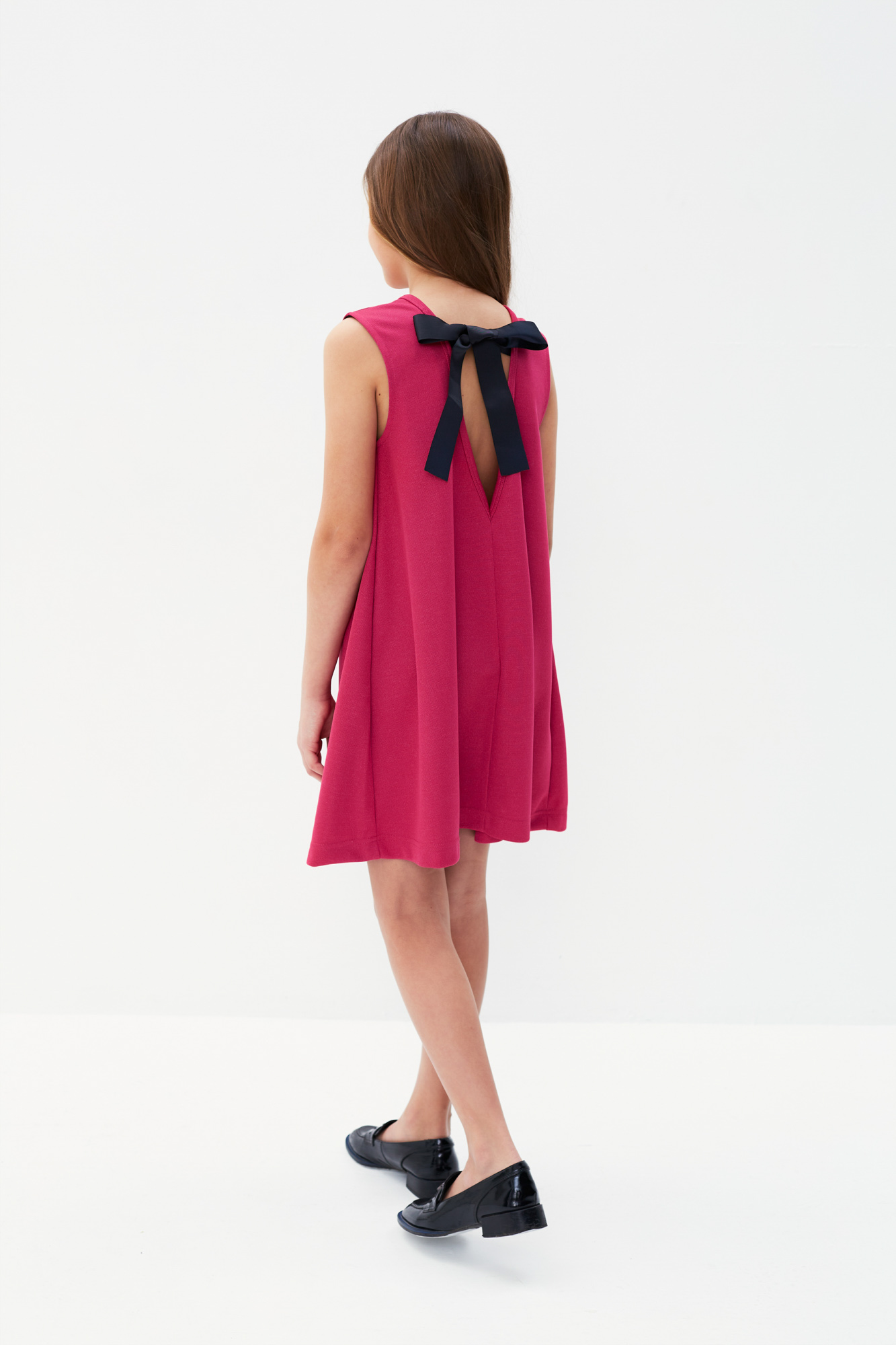 На спинке глубокий разрез, который фиксируется широким черным бантом из декоративной текстурированной ленты.