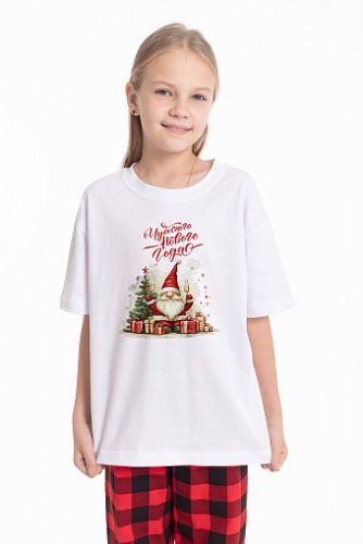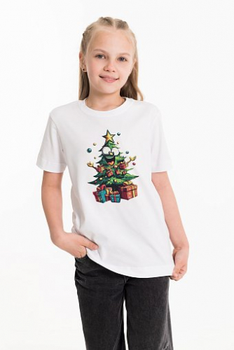 Футболка с новогодним принтом выполнена из хлопкового полотна. Материал приятен к телу, создает комфорт и хорошую воздухопроницаемость. Свободный силуэт со спущенным рукавом и круглым вырезом горловины обеспечивает удобную посадку и свободу движений. Отличный выбор для создания праздничного настроения и комфортных повседневных образов.