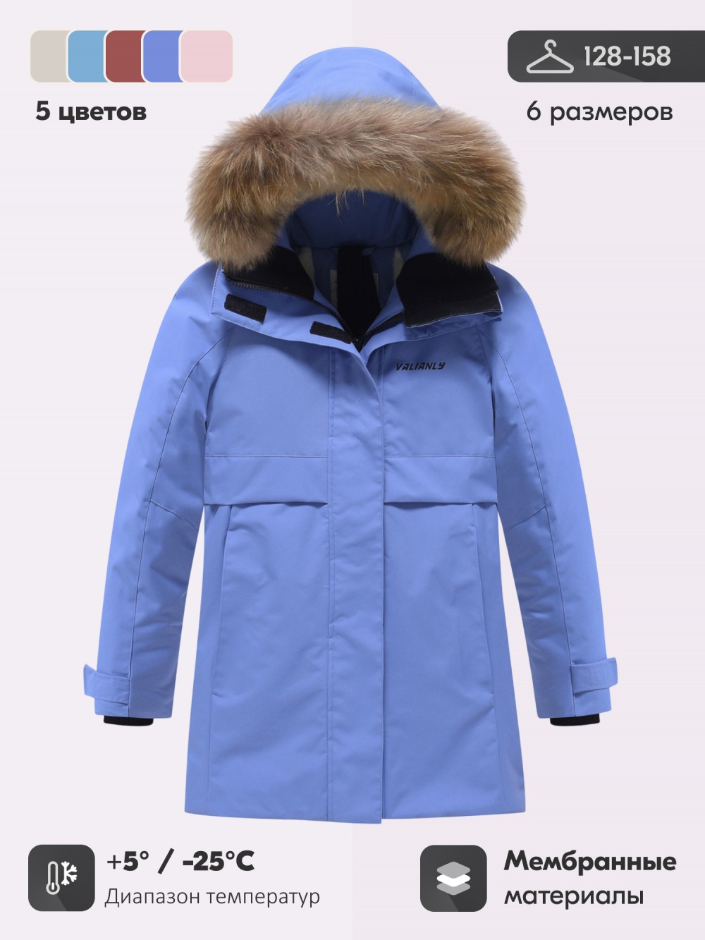 Парка зимняя подростковая для девочки с капюшоном и мехом василькового цвета 9534Vs