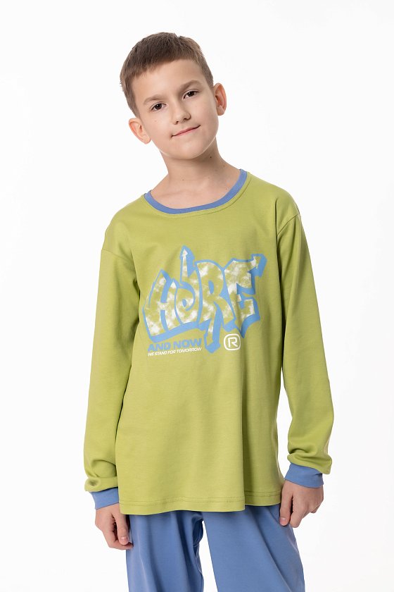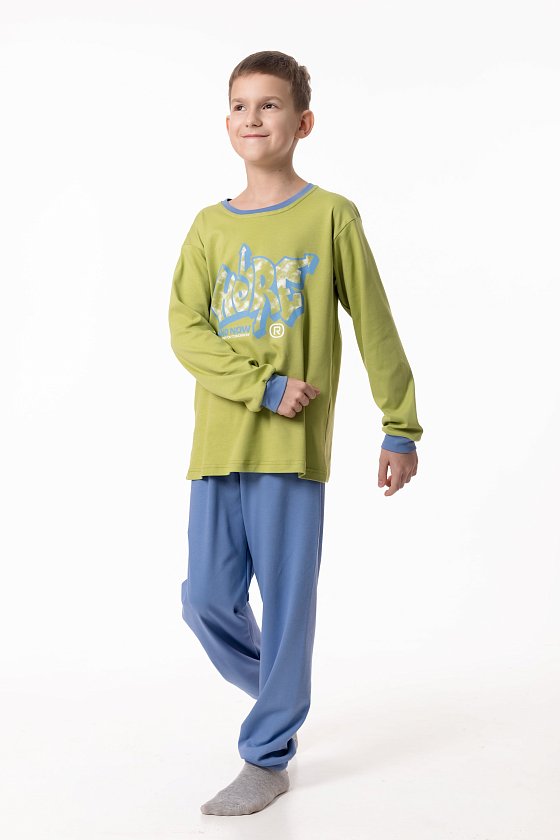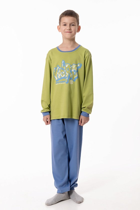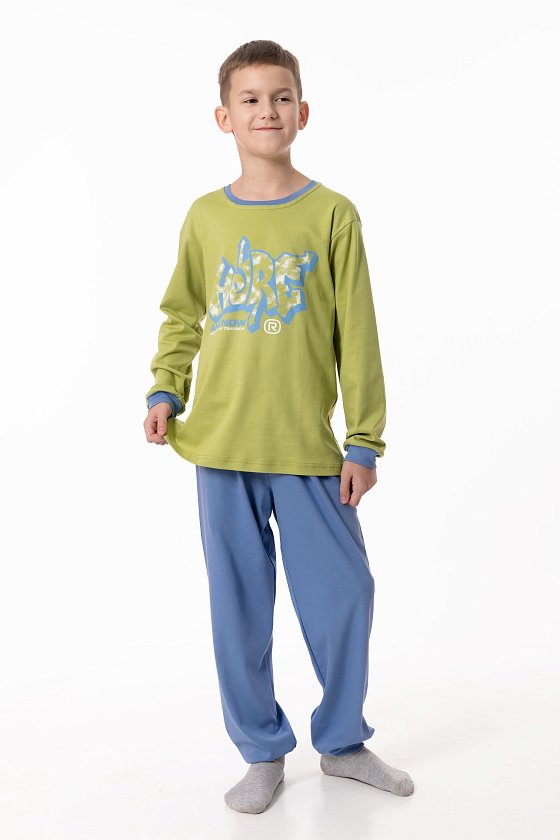 Пижама детская выполнена из мягкого интерлока, обеспечивающего комфорт и приятные ощущения во время сна. Комплект состоит из лонгслива с круглым вырезом горловины и рукавом на манжете, а также уютных брюк с поясом на резинке и манжетами по низу. Спереди расположен принт, придающий модели яркий акцент. Пижама идеально подойдёт для спокойного сна и комфортного отдыха вашего ребёнка.