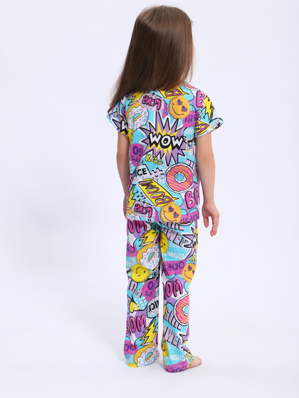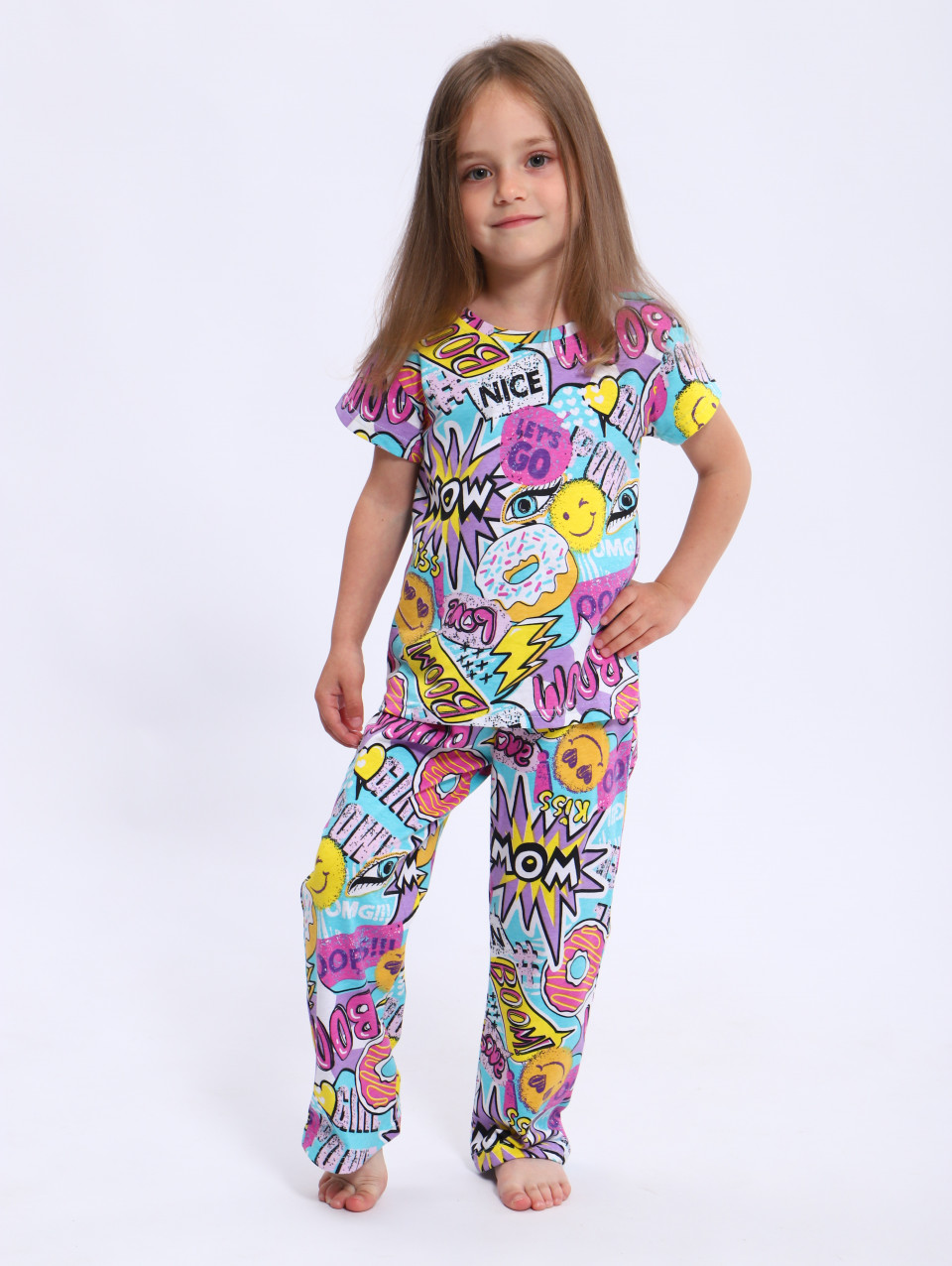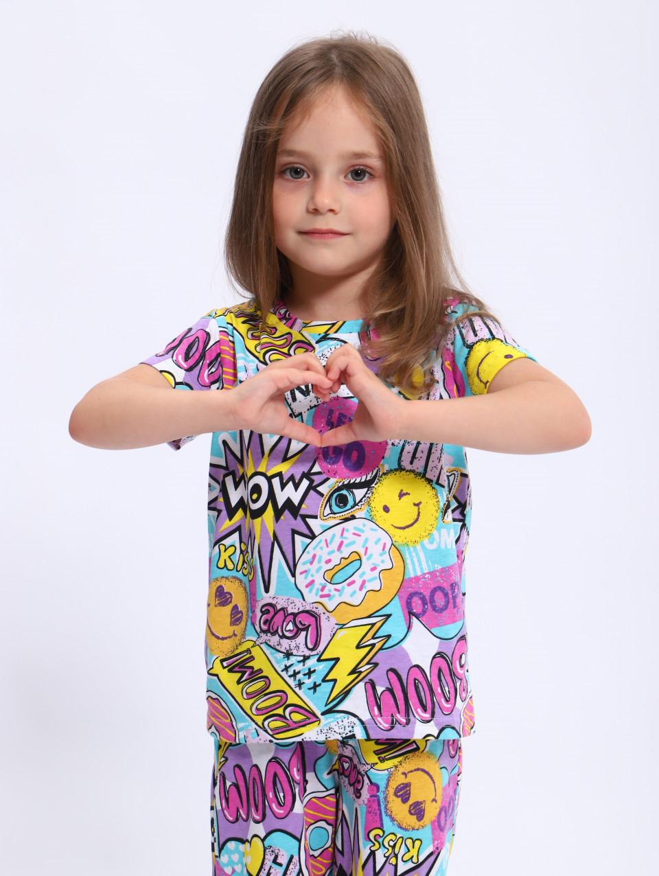Пижама изготовлена из хлопковой кулирки - гладкой и легкой натуральной ткани, которая приятна на ощупь и обеспечивает хорошую вентиляцию. Это 100% хлопок, что делает эту пижаму безопасной и гипоаллергенной для кожи вашей девочки. Эта пижама не только идеально подходит для сна, но и может быть использована как нарядный домашний костюм для девочки. Она подчеркнет ее стиль и индивидуальность, добавляя уют и комфорт в домашнюю обстановку.