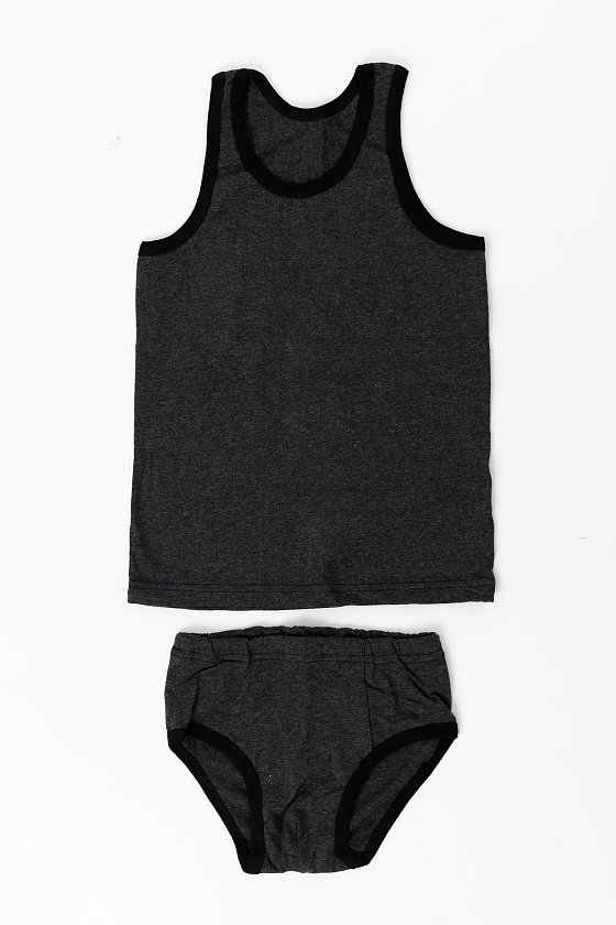 Комплект нижнего белья для мальчика выполнен из кулирки, 100% хлопок. Майка с широкими бретелями имеет свободный комфортный крой. Плавки с высокой посадкой и резиной по талии. По горловине, проймам и «ножкам» комплекта обработка бейкой.