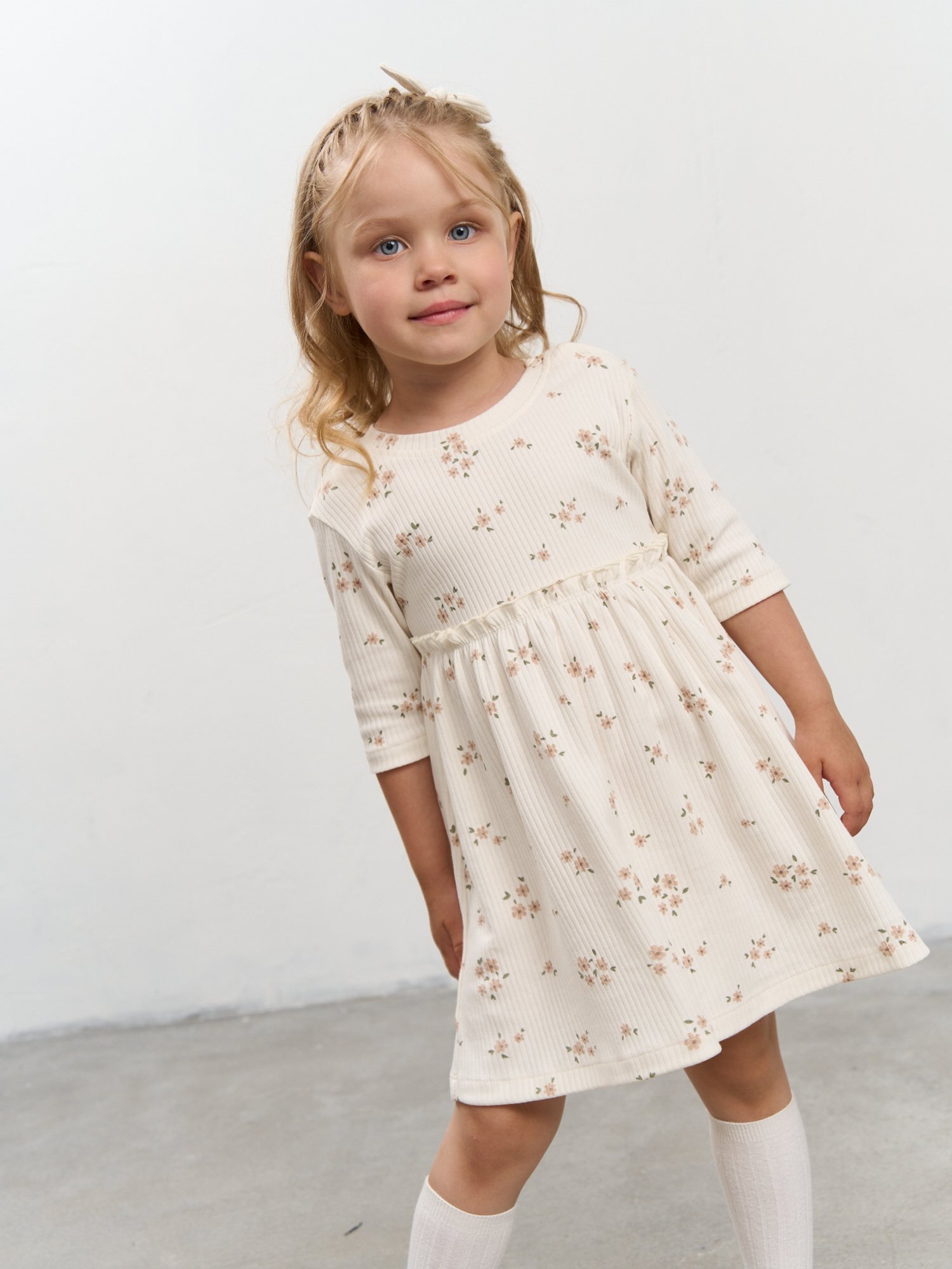 Горловина немного расширена и обработана бейкой из основной ткани – платье удобно надевать малышке самостоятельно