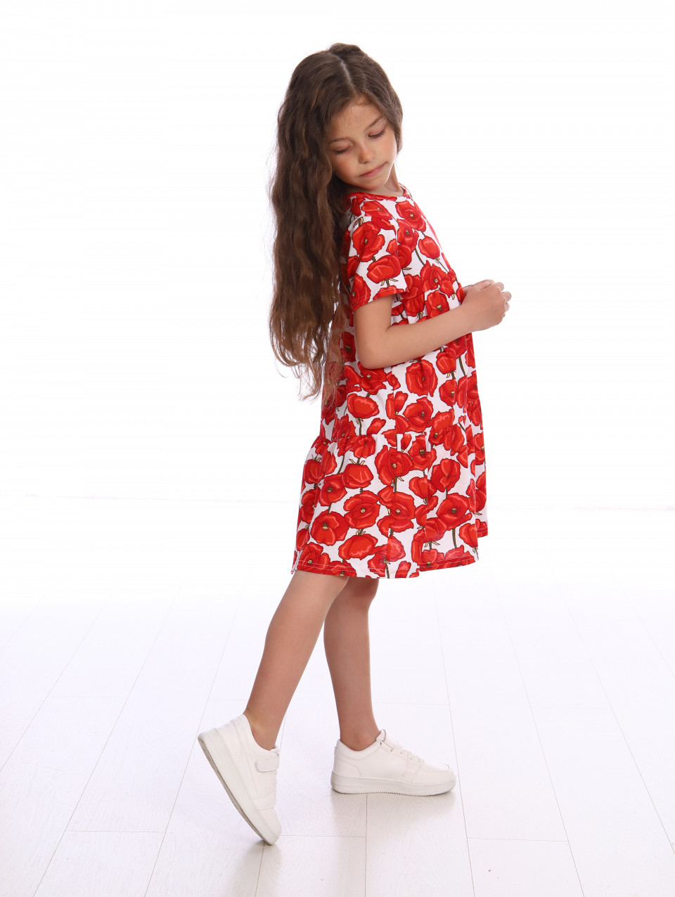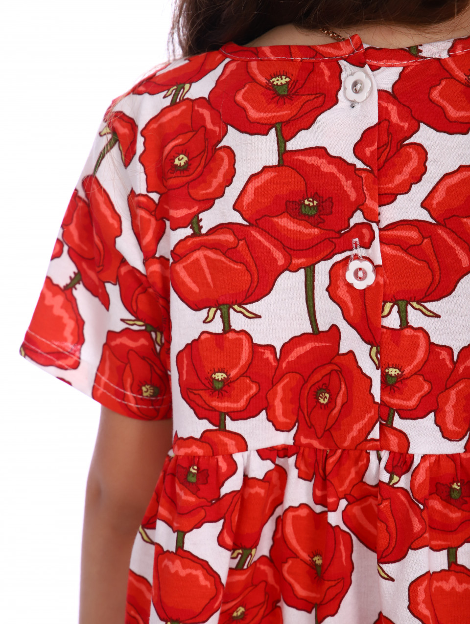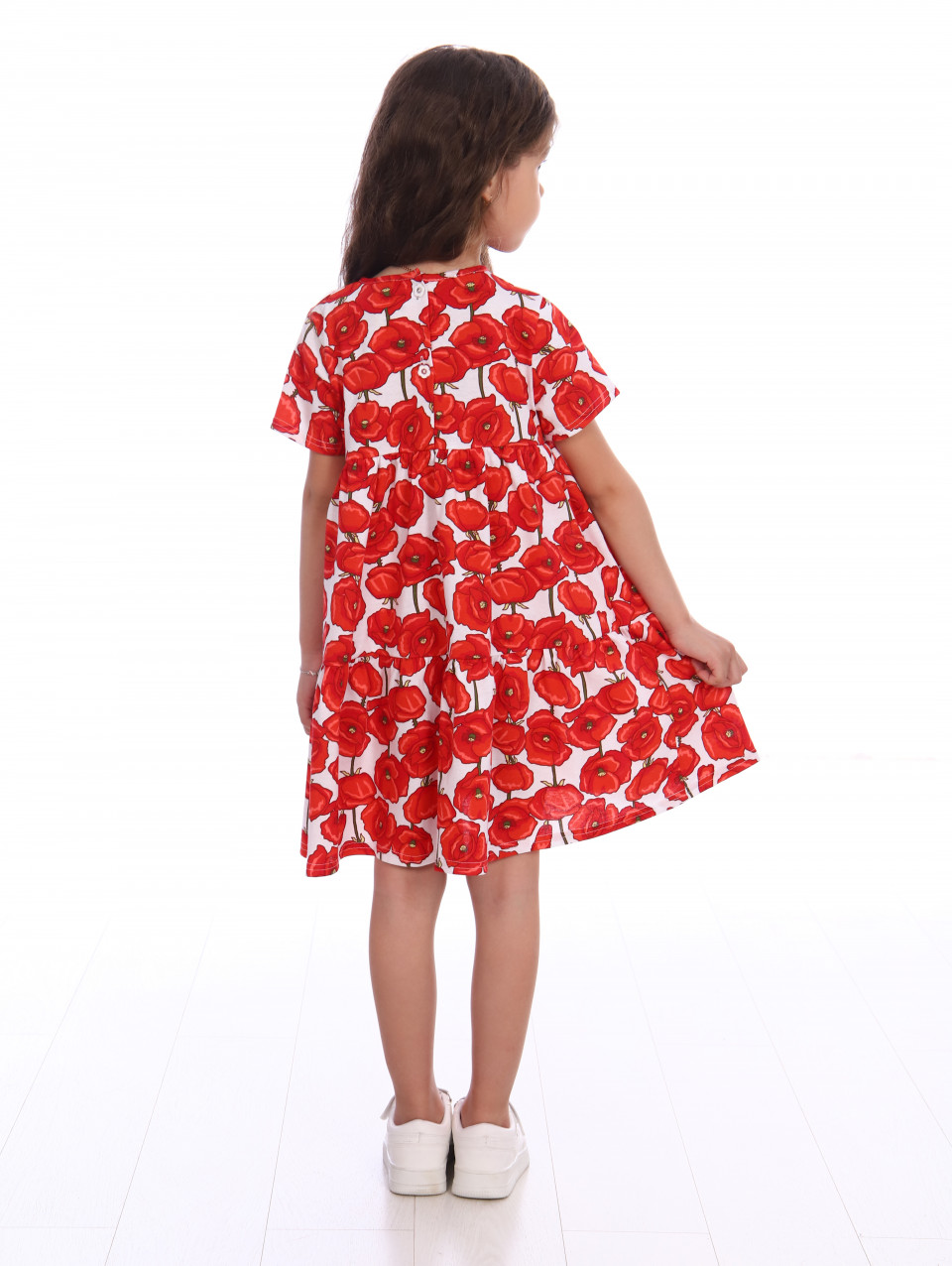 Летнее платье для девочки с коротким втачным рукавом и отрезной кокеткой на груди и подоле. Горловина детского платья округлая. Праздничное платье для девочки простое и стильное. Это и платье на день рождения, детское платье на 8 марта, платье в детский сад или на прогулку.