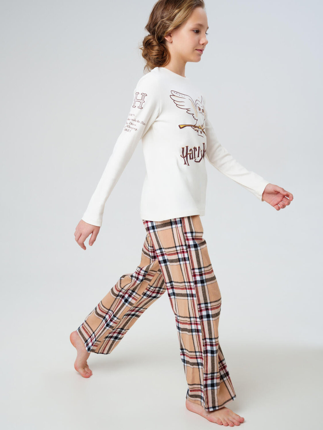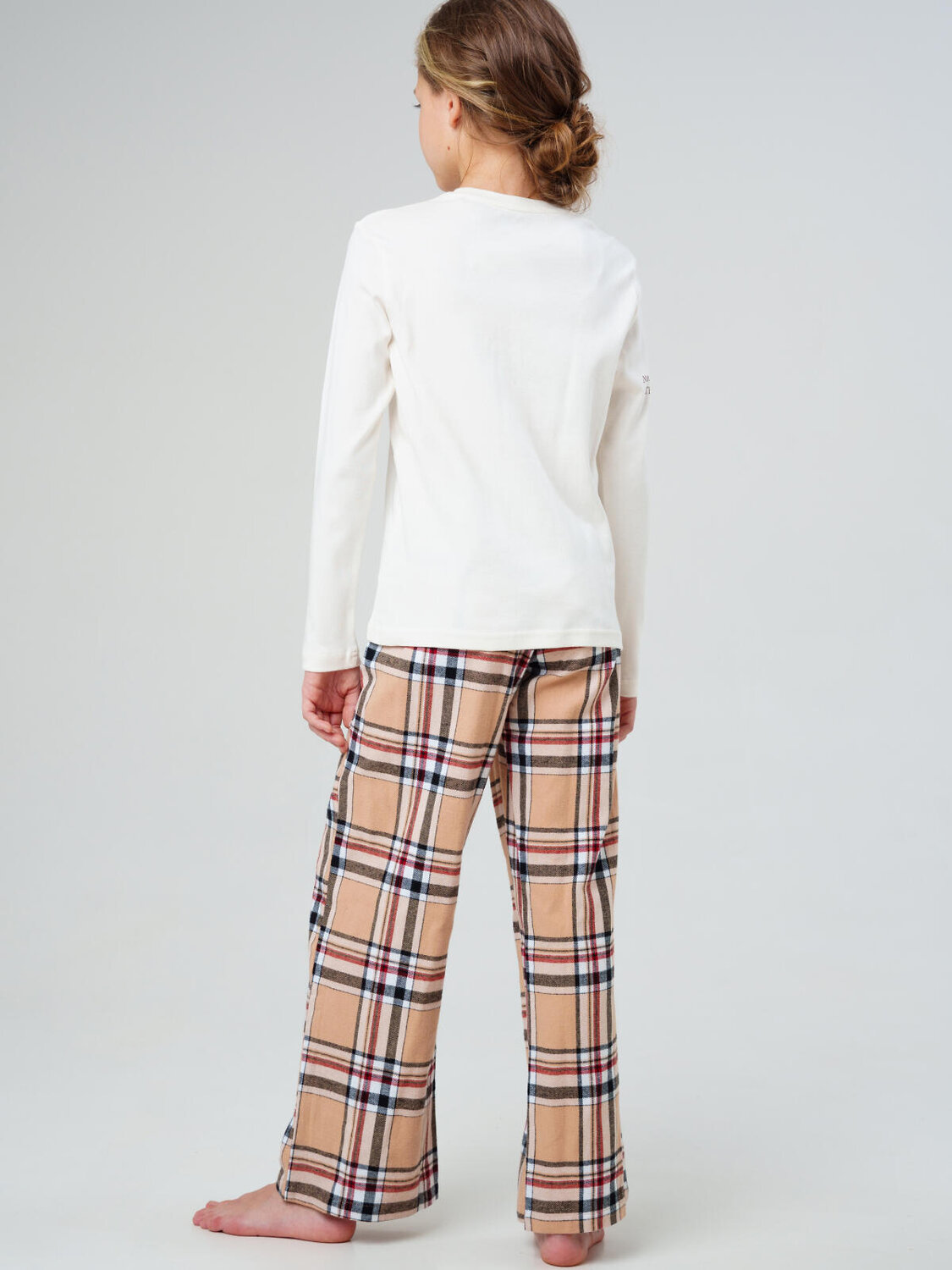 + клетчатый принт на брюках и модный декор на лонгсливе — стильный акцент в домашней одежде