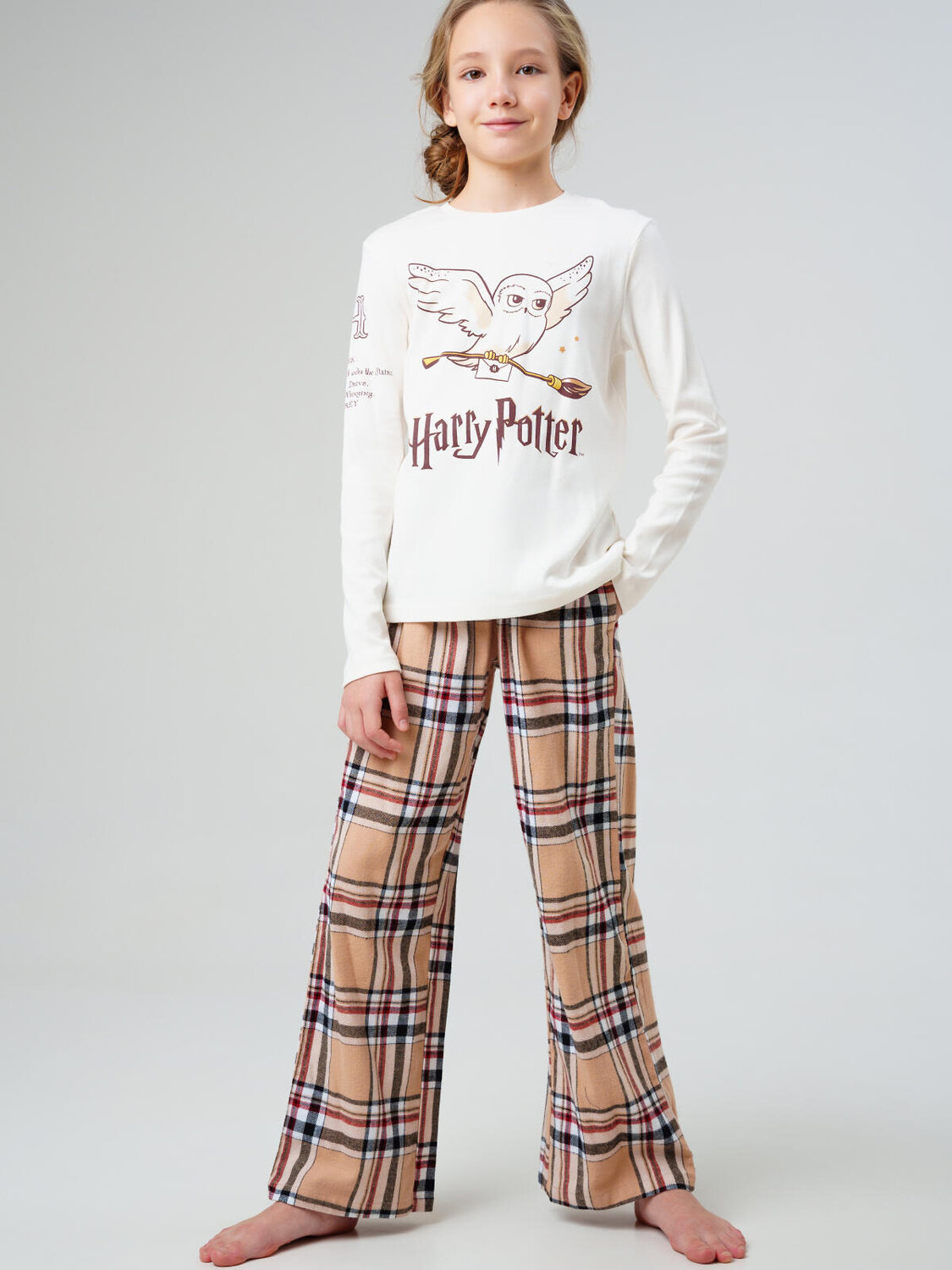 Бежевая пижама с лонгсливом и брюками для девочки подростка от PlayToday — это универсальный комплект для сна и дома, который сочетает стиль, комфорт и заботу о коже ребёнка.