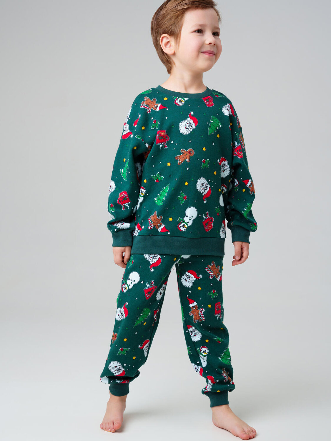 Модная зелёная детская пижама для мальчика из мягкого трикотажа от PlayToday — это комфорт, стиль и практичность для сна, игр и отдыха дома.