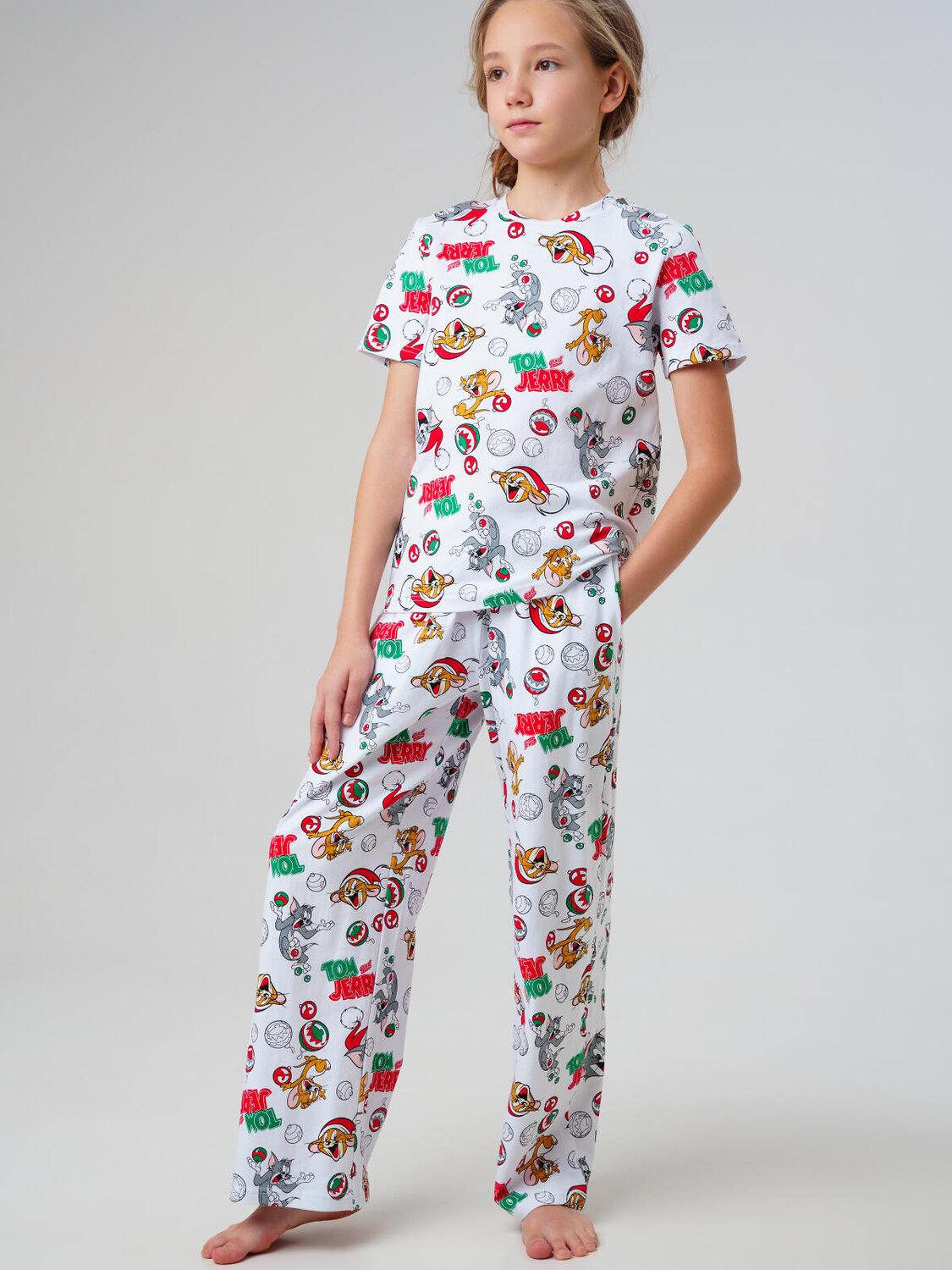 Яркая белая трикотажная пижама с принтом для девочки подростка от PlayToday — это сочетание удобства, безопасности и модного дизайна. В такой пижаме ребёнок будет спокойно спать и с удовольствием носить её дома каждый день.