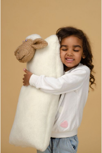 Новинка!!!, Мягкая подушка-игрушка Овечка Плюша из натуральной овечьей шерсти., Наполнитель халофайбер. Габариты: 30*60, Овечка Плюша является символом новой коллекции ПЛЮША. Покупая продукцию WOOLLAMB с этой эмблемой, ты делаешь вклад в благотворительную акцию "ДЕТИ ДЕТЯМ" (подробнее см. Новости)  Мы направим процент от продаж в благотворительные фонды, которые помогают детям с различными заболеваниями., Будь яркой, модной, оригинальной с компанией WOOLLAMB!