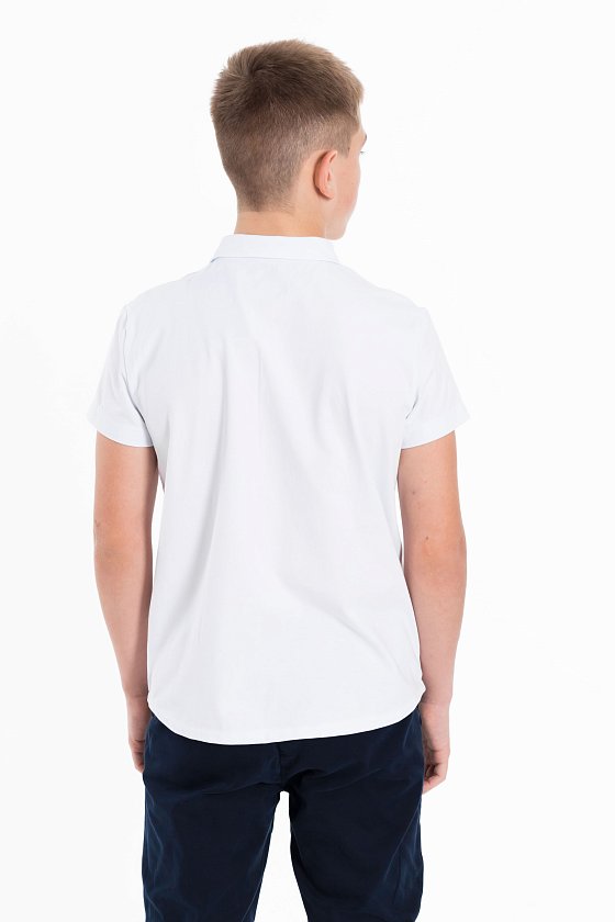 Белая рубашка с коротким рукавом из материала кулирка с лайкрой и застёжкой на пуговицы — отличный выбор для школьника. Обеспечивает свободу движений, комфорт и аккуратный внешний вид. Воротник придаёт изделию стильный вид.