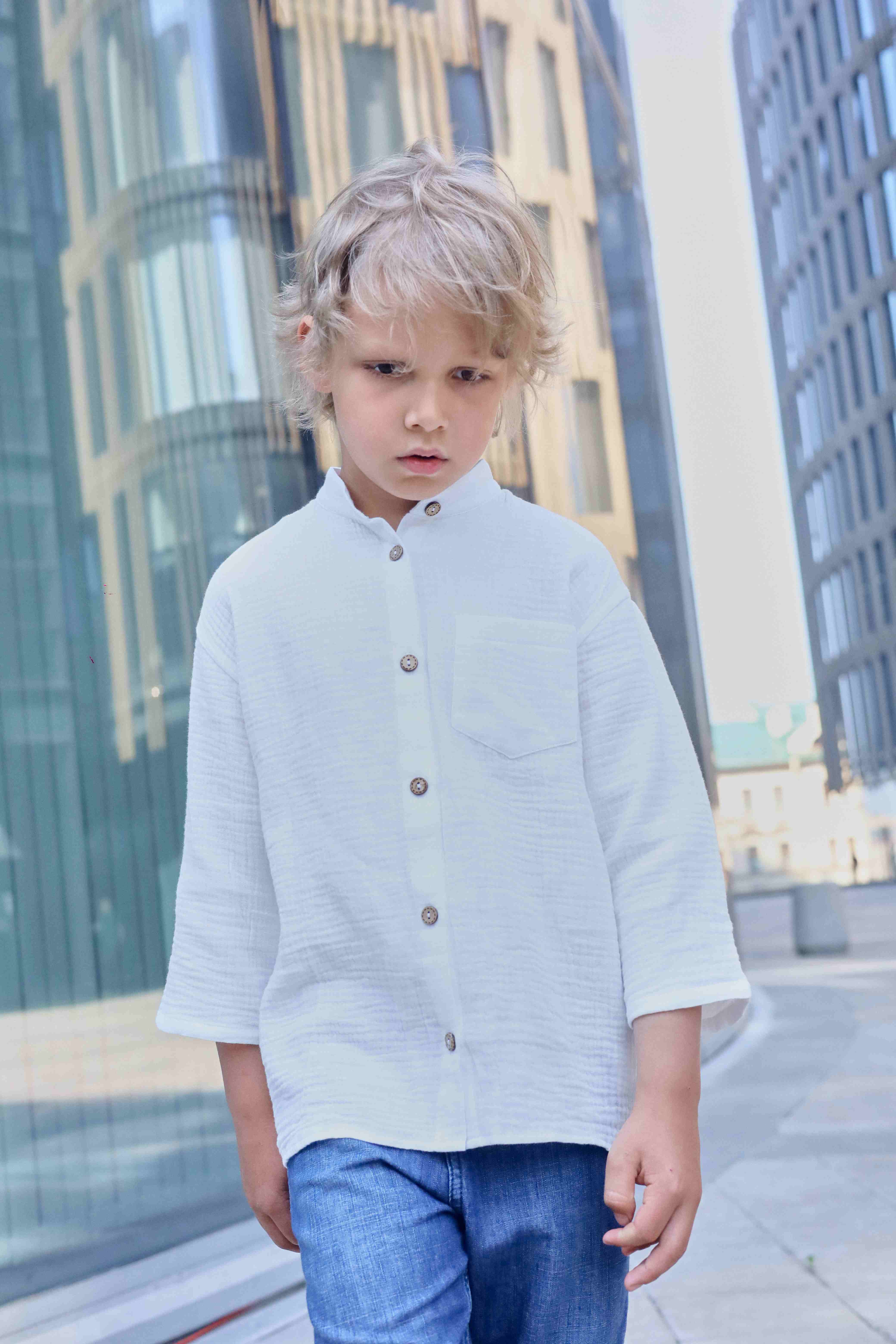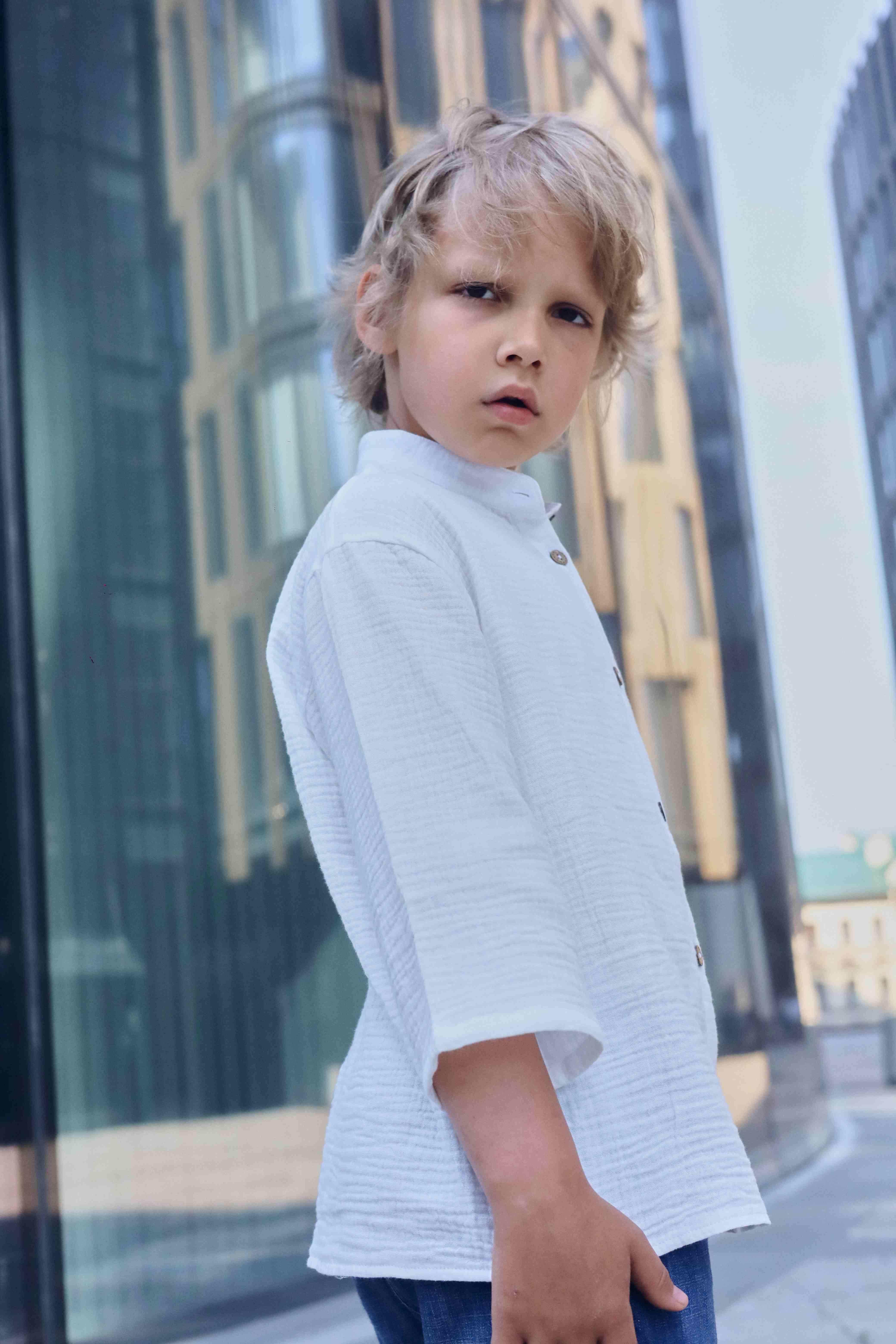 Легкая, воздушная рубашка из муслина для мальчика. Рубаха станет любимой одеждой для жарких дней. Натуральная ткань обеспечит комфорт и свободу движений, а стильный дизайн этой летней рубашки добавит неповторимости и стиля в летний гардероб любого ребенка. Летняя муслиновая рубашка для мальчика - выполнена из легкой, мягкой и дышащей ткани муслина. Она отлично подойдет для летнего сезона, когда необходима легкая одежда для комфортной носки в жаркую погоду Как использовать?