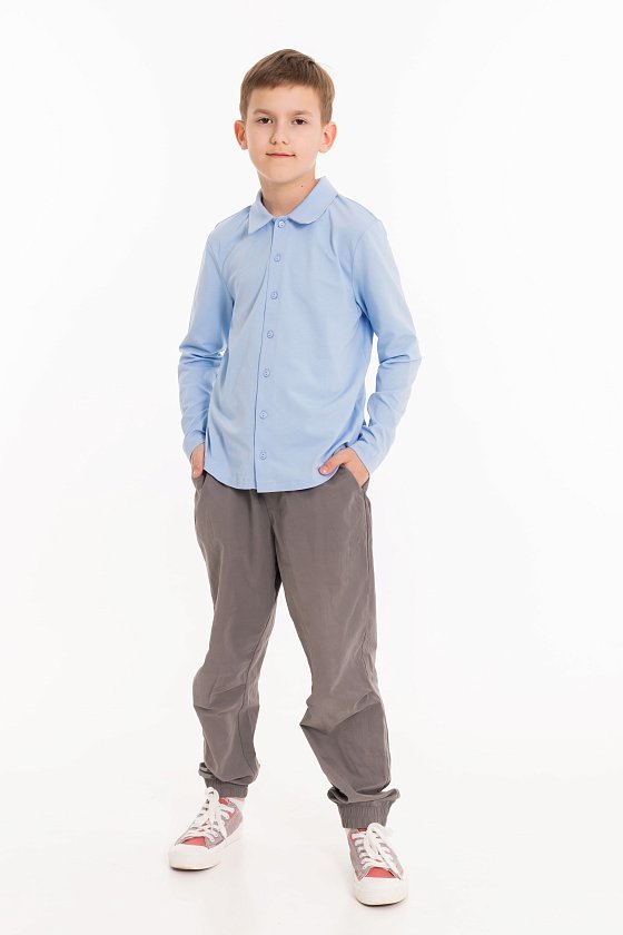 Рубашка с длинным рукавом из материала кулирка с лайкрой и застёжкой на пуговицы — отличный выбор для школьника. Обеспечивает свободу движений, комфорт и аккуратный внешний вид. Воротник придаёт изделию стильный вид.