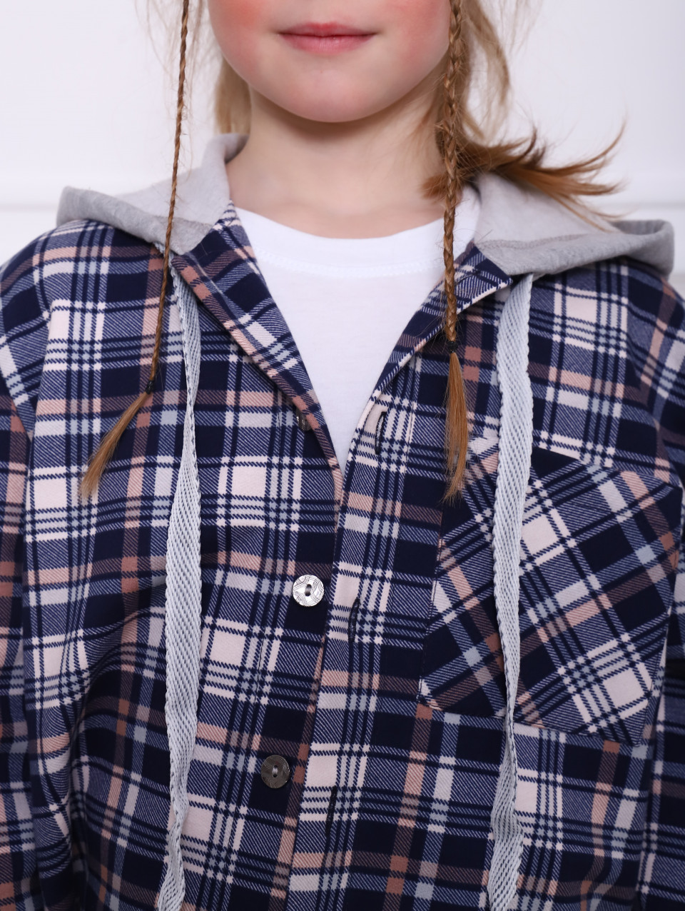 Детская рубашка с начесом. Рубашка в клетку удлиненная на пуговицах и с капюшоном на завязках. Толстовка детская утепленная с длинными спущенными рукавами на манжете, на груди накладной карман. Изготовлена из натурального гипоаллергенного 100% хлопка, материал - футер с начёсом. Кофта с пуговицами подойдет для занятий спортом, его можно использовать как одежду для дома, как домашний костюм, в школу, повседневный костюм - одежда для улицы на каждый день, костюм на дачу, как курточку в прохладную погоду. Базовая детская вещь незаменимая для детского гардероба.
