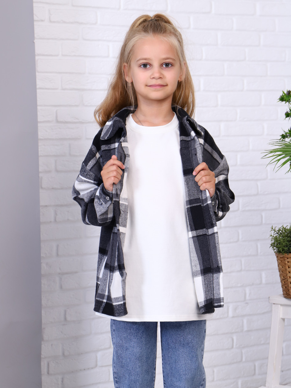 Детская рубашка, утепленная, демисезонная, с легким начесом, материал - фланель, без подкладки. Свободный крой с заниженной линией плеча не сковывает движения, позволяя ребенку быть активным. Модель дополнена отложным воротником и длинными рукавами с манжетами на пуговицах. Два накладной кармана-обманки на груди. Детская утепленная рубашка в клетку для девочки или для мальчика станет отличным дополнением гардероба Вашего ребенка. Теплая рубашка подойдет для активного отдыха, спорта, прогулок и праздников.