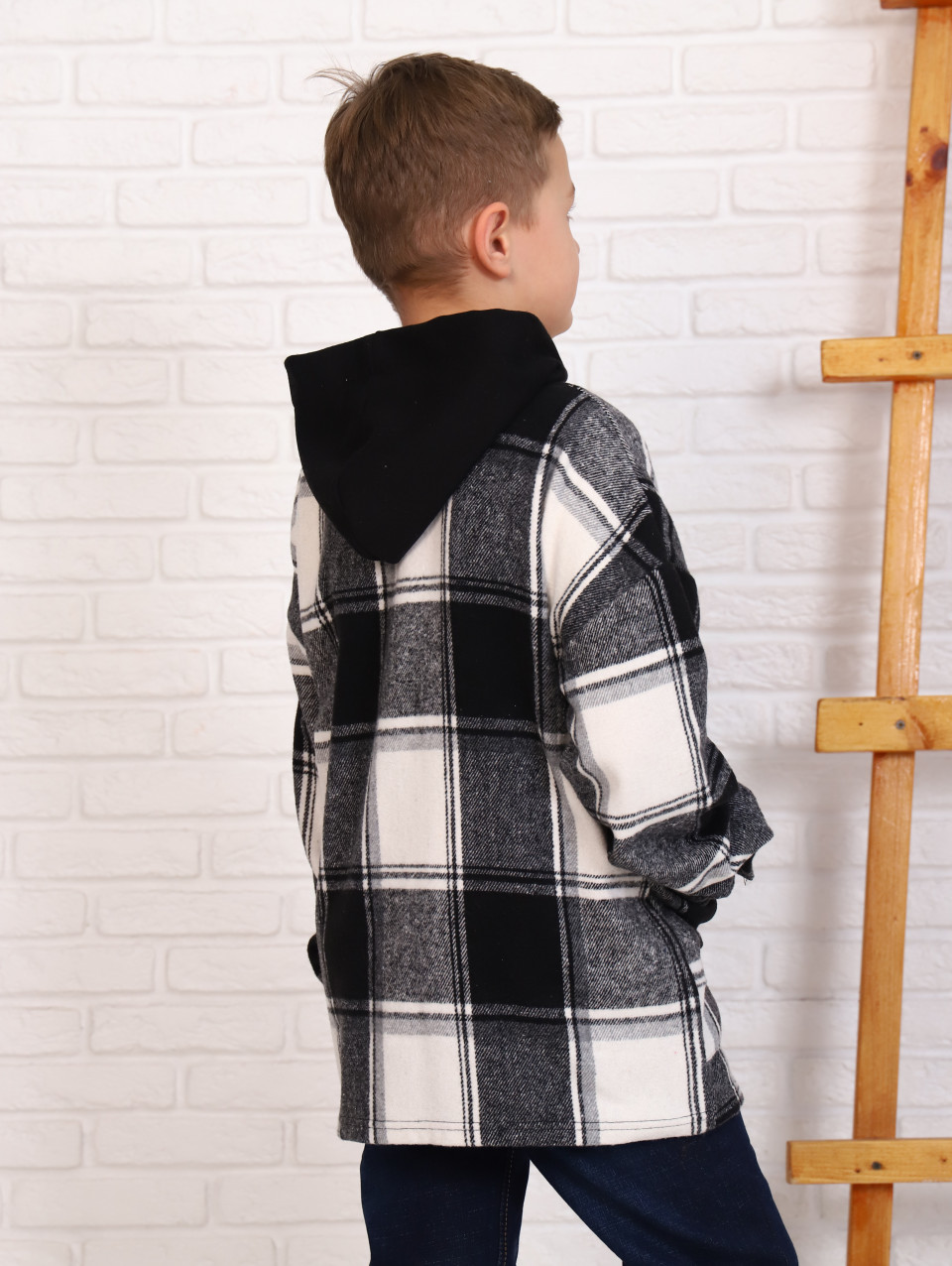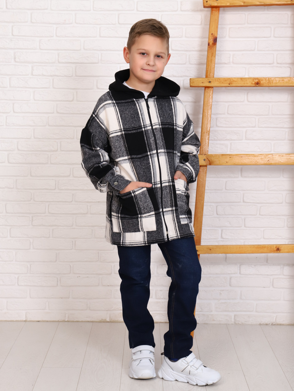 Детская теплая толстовка оверсайз для мальчика. Подростковая прмого кроя, с глубоким комфортным капюшоном. Рубашка застегивается на молнию. Рукав втачной, спущенный, на манжетах пуговицы. Спереди на полочке удобные кармашки.