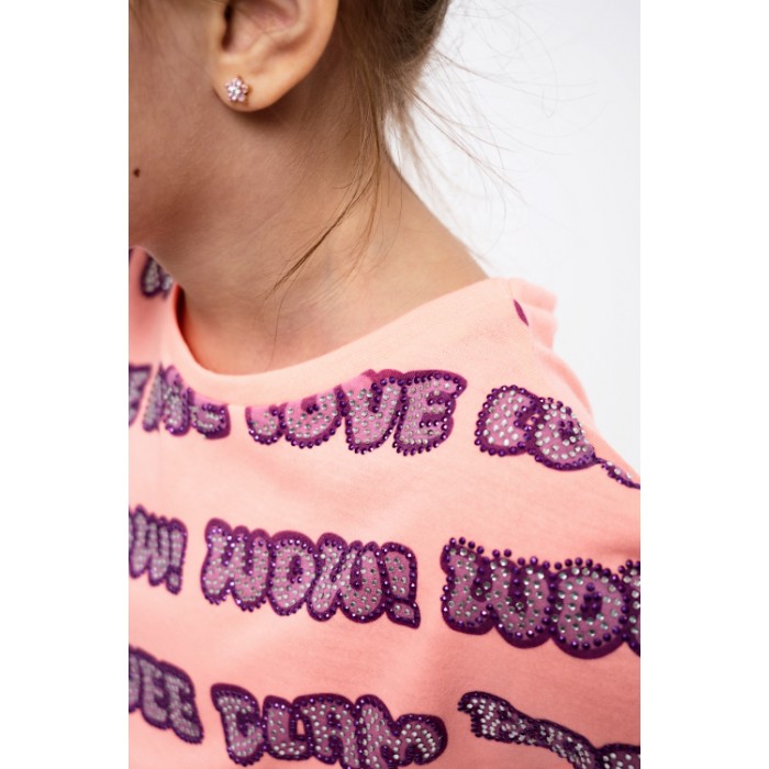 Удобная модель, мягкий трикотаж, яркий рисунок, украшенный стразами, понравятся девочкам.