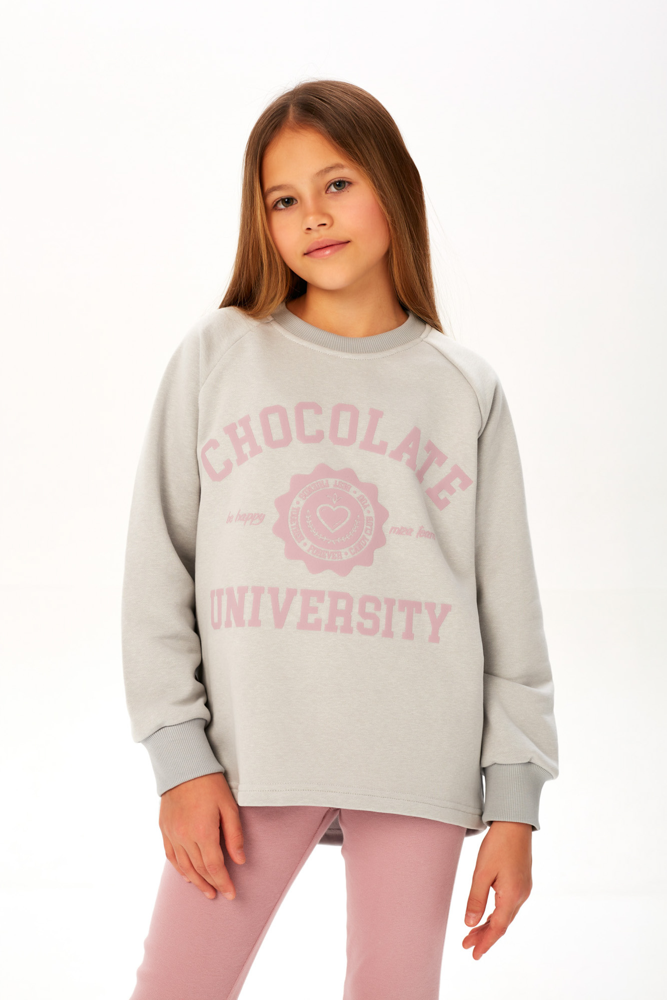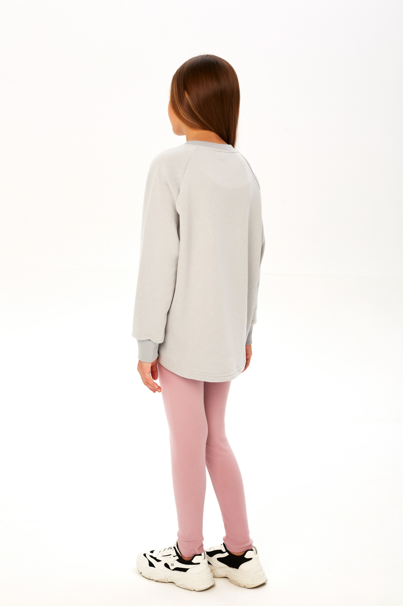 Состоит из удлиненного свитшота свободного кроя, выполненного из мягкого уютного футера с петельной изнанкой и легинсов из эластичного трикотажа.