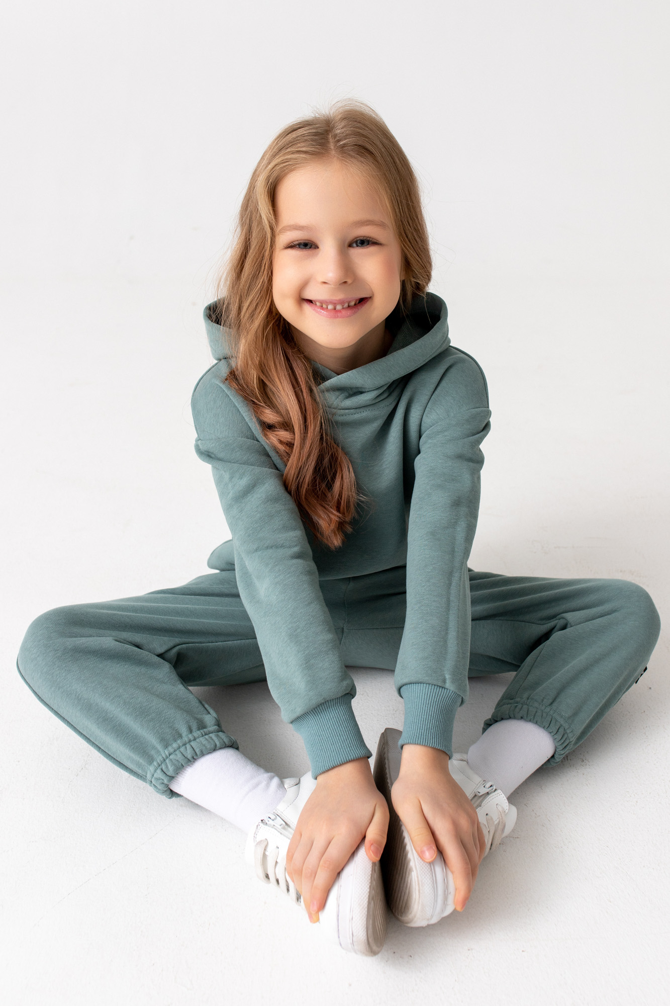 Состоит из худи с капюшоном базового кроя и джогеров.