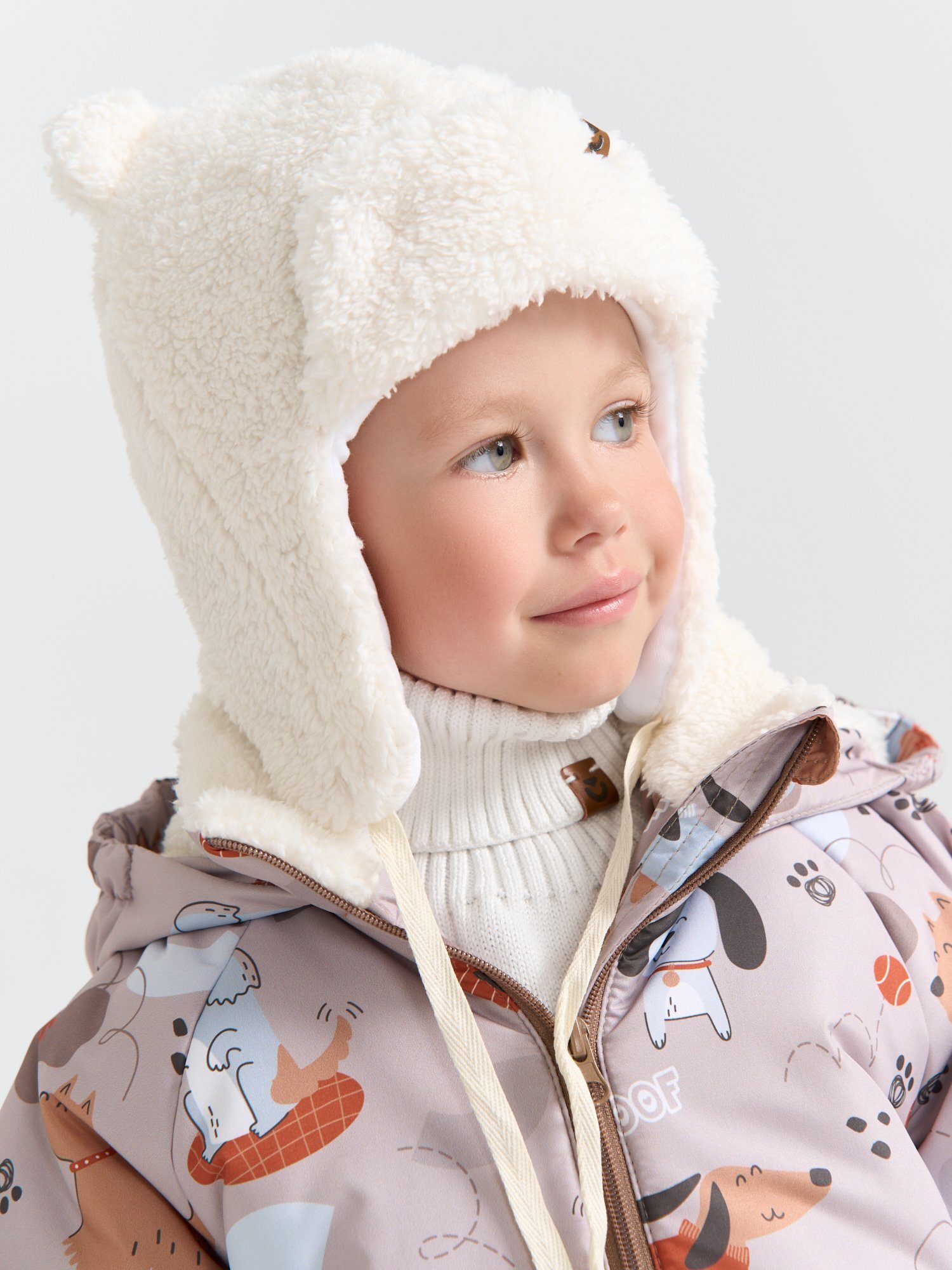 Мягкая, как любимый плюшевый мишка: основная ткань и декор выполнены из нежного меха – малышу приятно трогать и носить такую шапку.