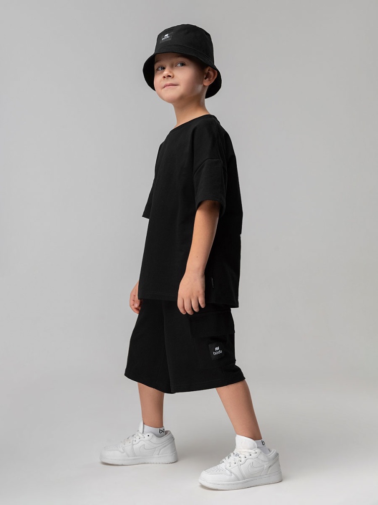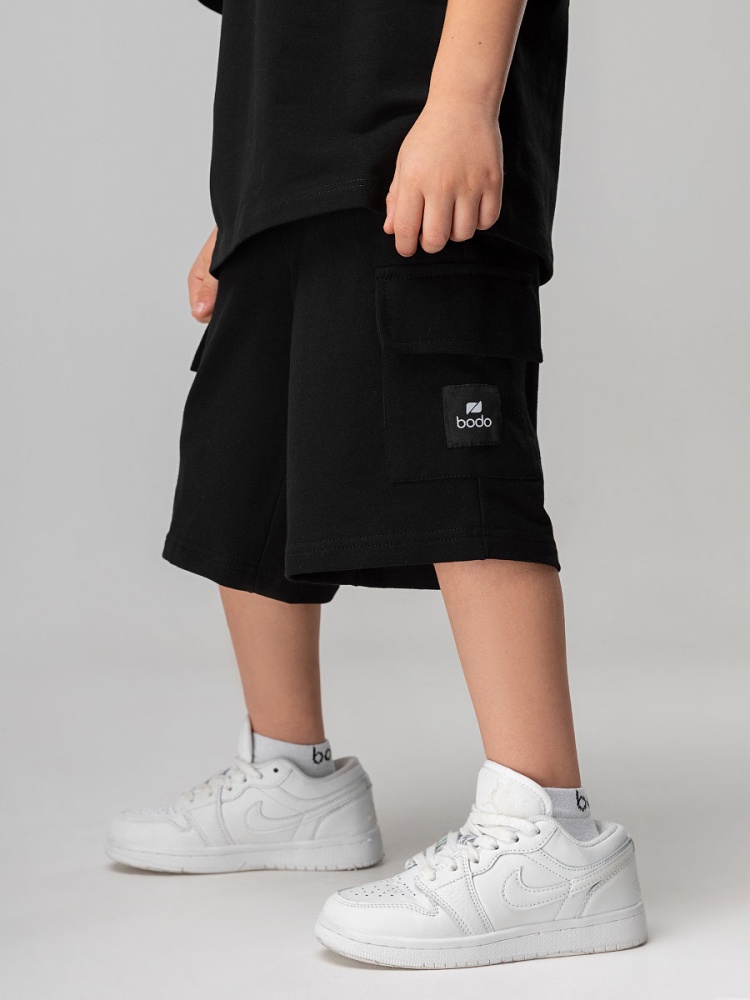 Материал футер двухнитка Состав 92% хлопок 8% лайкра Шорты для детей. Шорты свободные на притачном поясе с внутренней резинкой, с накладными карманами на боковых швах. Состав: футер двухнитка 92% хлопок 8% лайкра