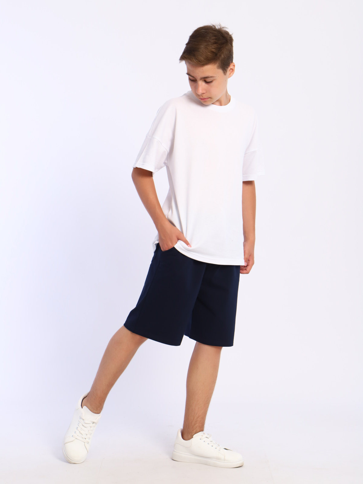 Свободные детские шорты для мальчиков модного оверсайз покроя сшиты на ребят школьного возраста.  Универсальная базовая модель позволяет носить их и как форму для физкультуры и как повседневные летние шортики и как домашние. Натуральный состав гарантирует комфортное ношение, кожа подростка дышит даже в теплую жаркую погоду. Длина до колен. В боковых швах - кармашки. На задней половинке накладной карман. Пояс детских шорт на резинке со шнурком.  Спортивные шорты пригодятся для поездки на отдых, активных игр, баскетбола и футбола.  Стильные oversize штаны круто смотрятся на модных современных ребятах разной комплекции на высоких и невысоких на полных и худых. Подходят для малышей и подростков, Шорты спортивные легкие до колена - это классика в мире спортивной одежды, а также неотъемлемый атрибут экипировки любого спортсмена. Они подходят для различных видов активности и позволяют чувствовать себя комфортно в любой ситуации. Стильные шорты для мальчика универсальные и практичные, так как они подходят для тренировок по футболу баскетболу фитнесу бегу теннису волейболу кикбоксингу боксу, для соревнований, похода в спортзал, для пляжного отдыха и теплых летних осенних весенних прогулок. Бордшорты широкие из хлопка незаменимы для поездок на природу, на дачу или в отпуск, в них ребенок будет чувствовать себя уверенно и свободно. Футбольные баскетбольные теннисные волейбольные плавательные тренировочные боксерские шортики без карманов - базовые вещи в гардеробе активных детишек, станут отличным подарком на любой праздник: день рождения, Новый год (НГ), Рождество, новогодние праздники и просто так, без повода. Эта базовая детская и подростковая одежда будет уместна в любое время года: лето осень зиму весну. Их модный дизайн, трендовые цвета и качественный материал не оставят равнодушными ни взрослых, ни детей.