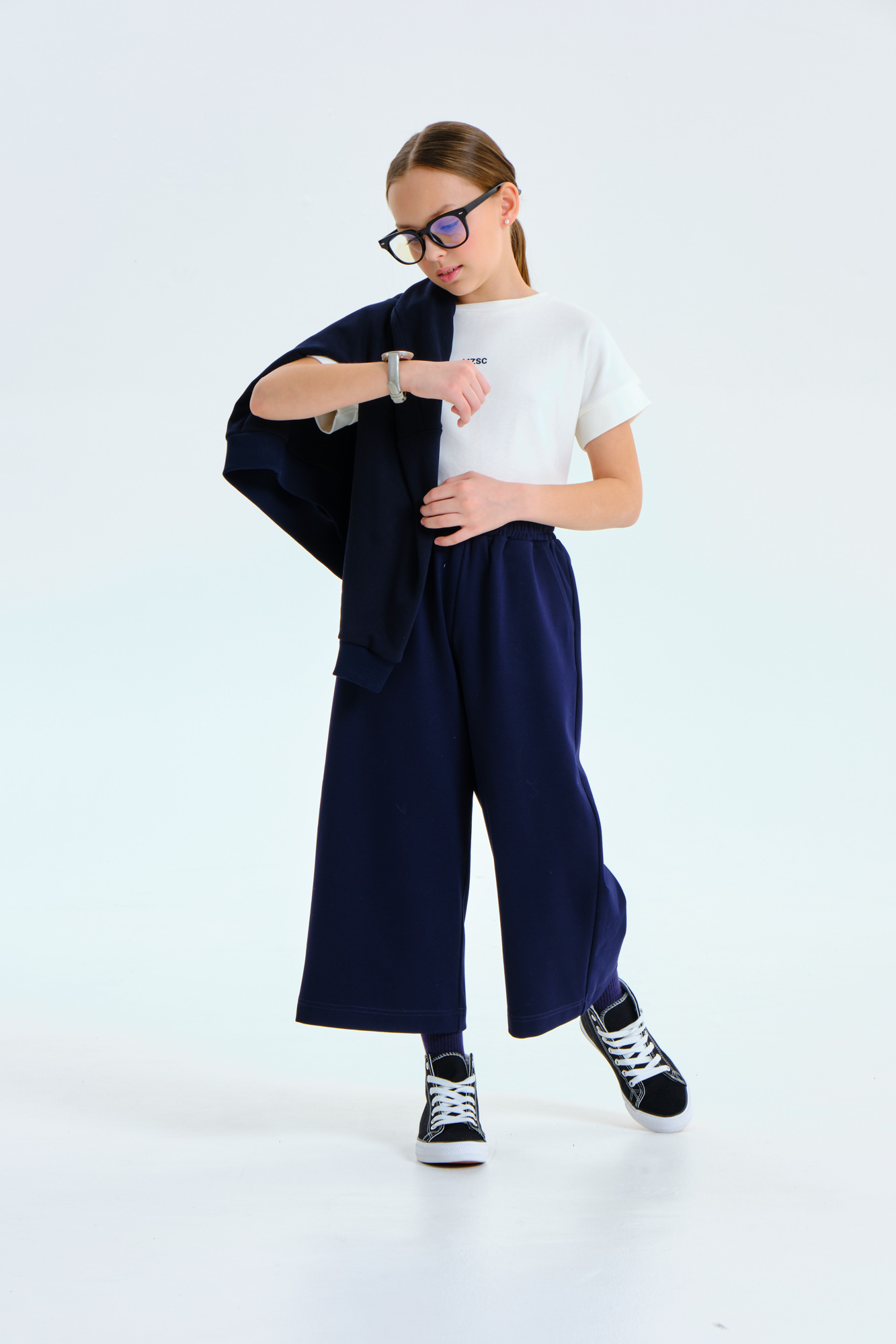 Брюки свободного кроя укороченной дины.