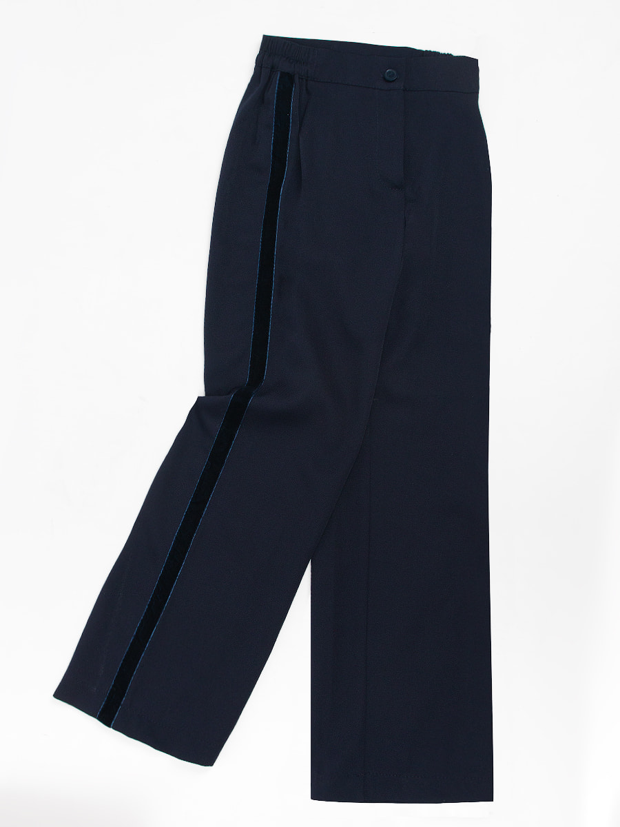 Элегантные, классические брюки для девочки Соль&Перец. Брюки декорированы бархатными лентами по бокам, в пояс вшита резинка. Брюки гармонично сочетаются с разнообразными блузками, водолазками и джемперами.