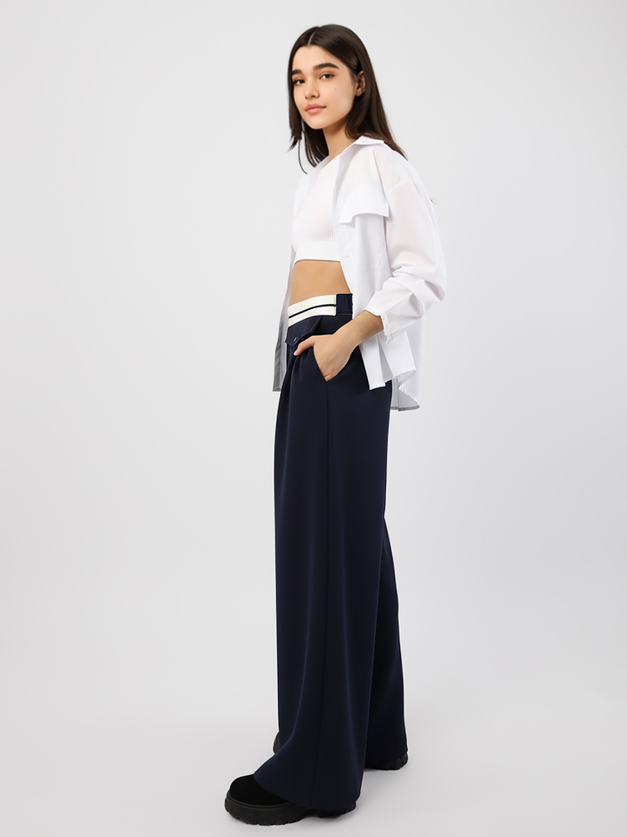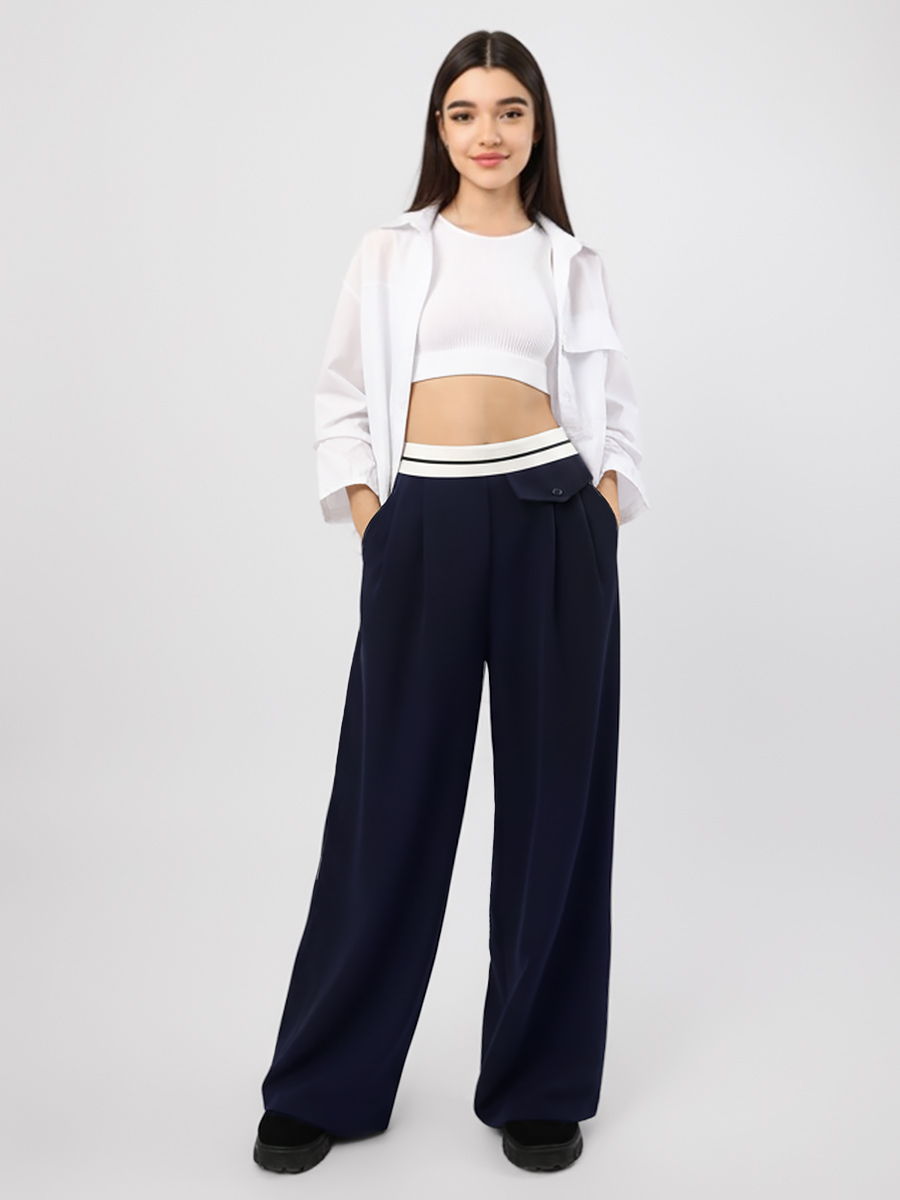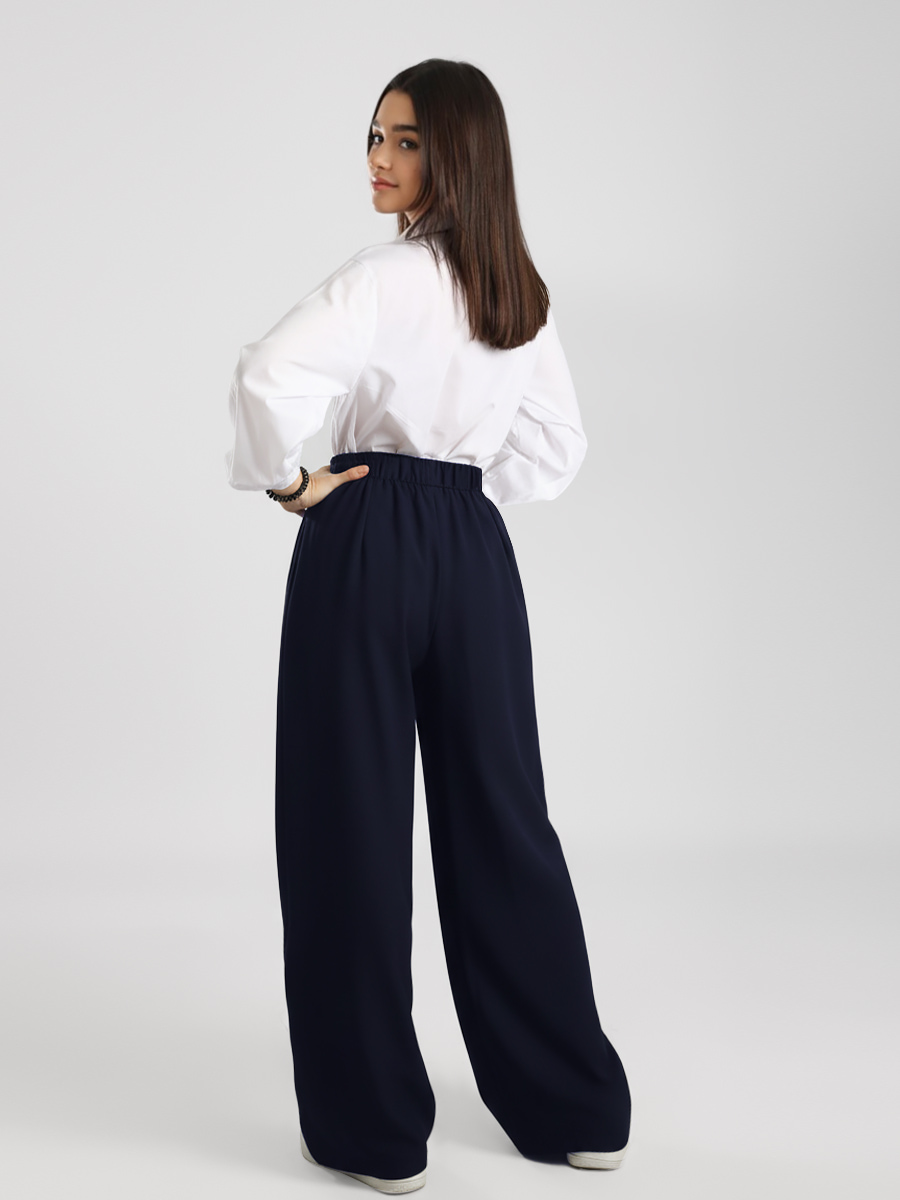 Брюки для девочки Соль&Перец. Модель имеет расширяющийся от бедра силуэт, что визуально вытягивает фигуру. Брюки с карманами, сзади в пояс вшита резинка. Брюки прекрасно сочетаются с любым верхом, и подойдут для любого мероприятия, подчеркнут индивидуальный стиль девочки, и разнообразят её школьный образ.