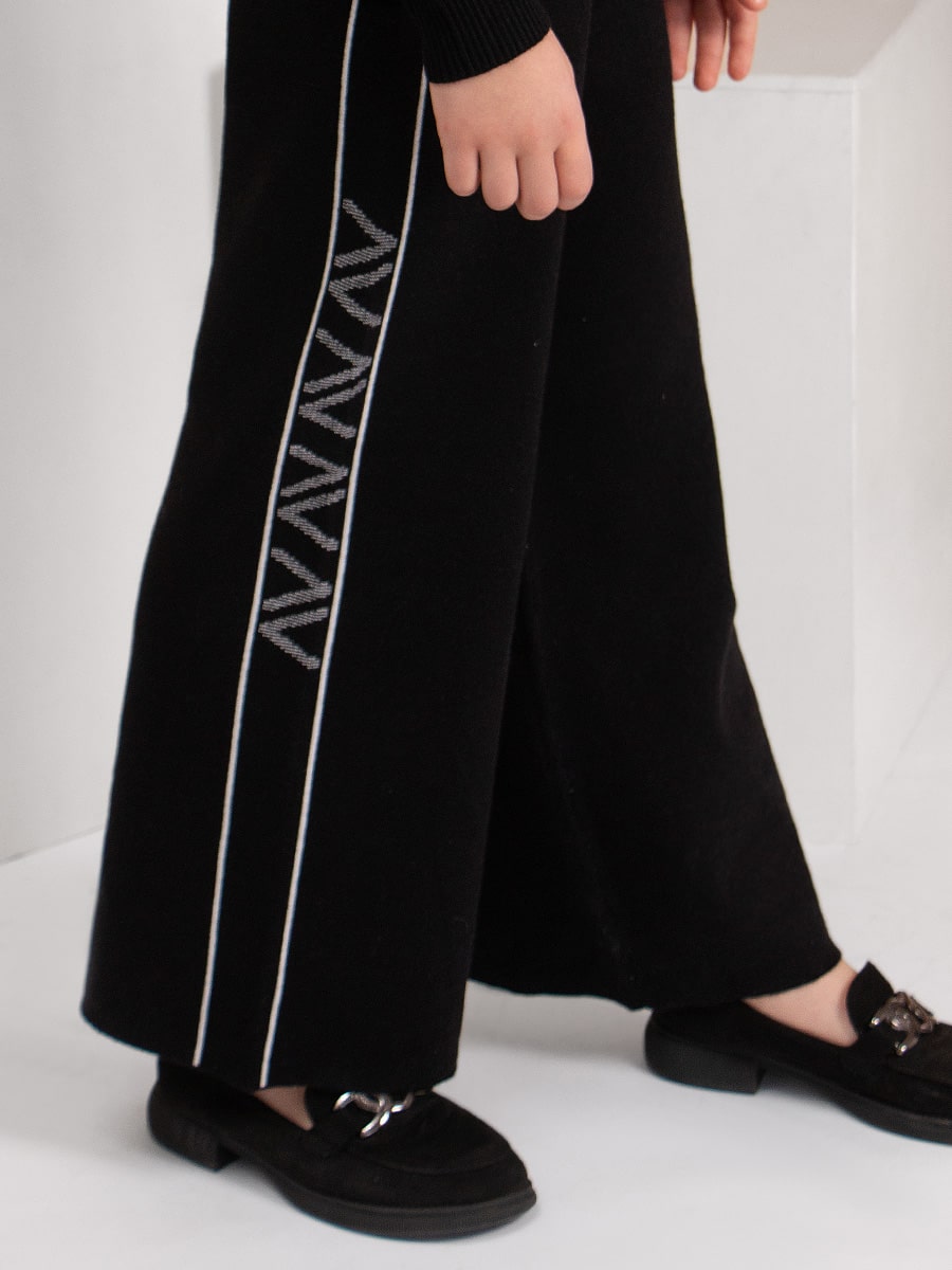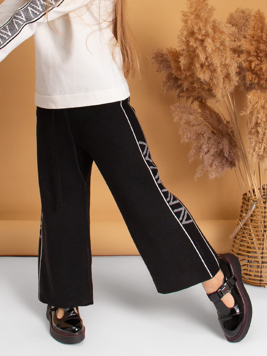 Брюки-кюлоты для девочки Соль&Перец с лампасами и с мягкой резинкой по талии. Тёплый, вязаный трикотаж не сковывает движений и приятно облегает тело.