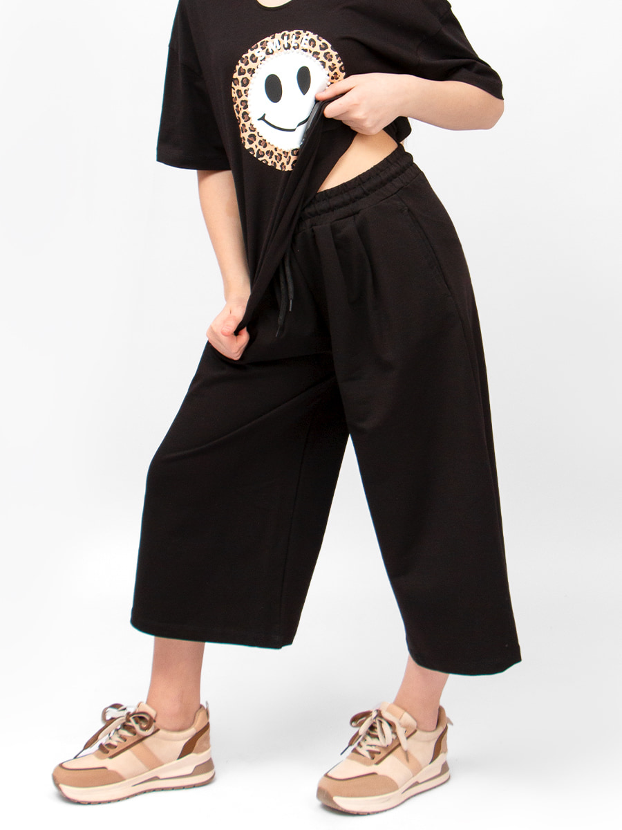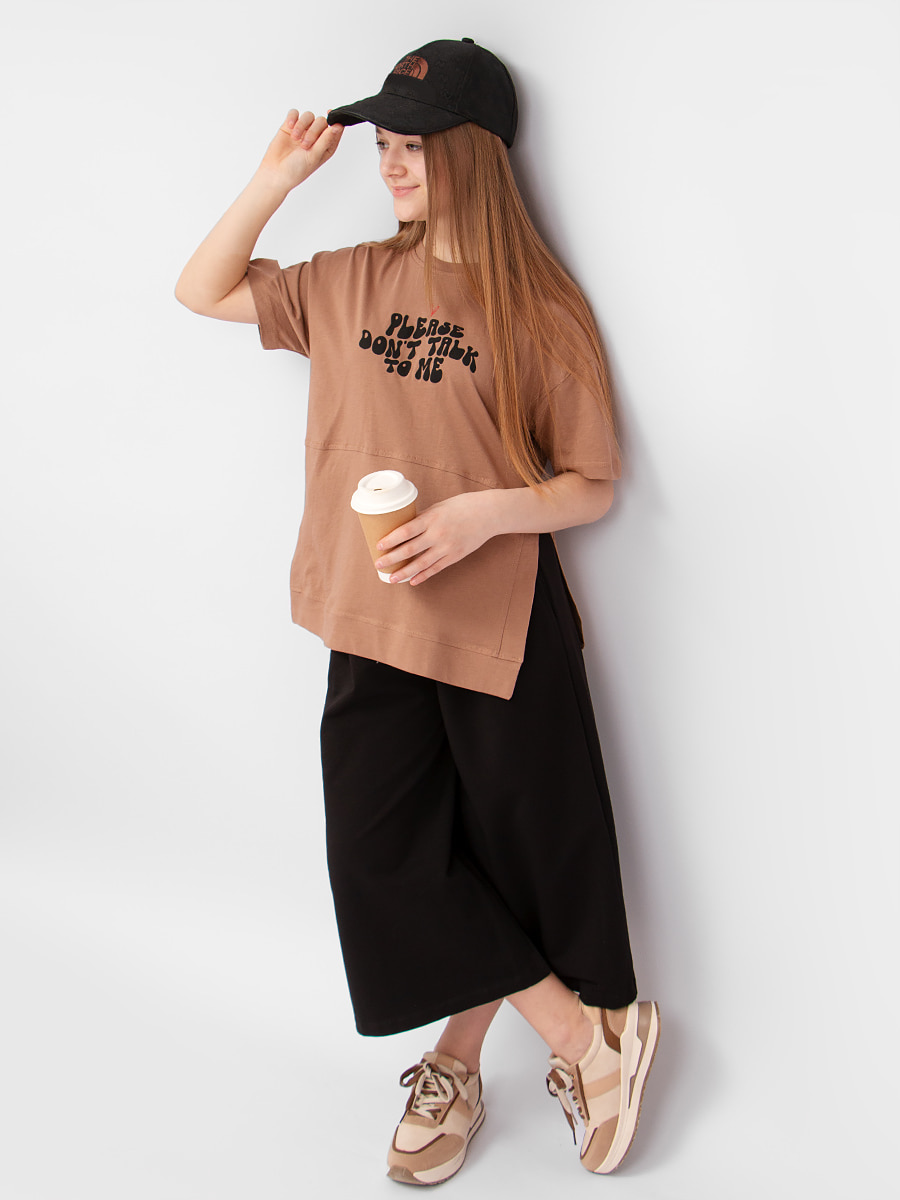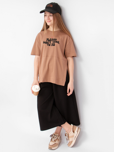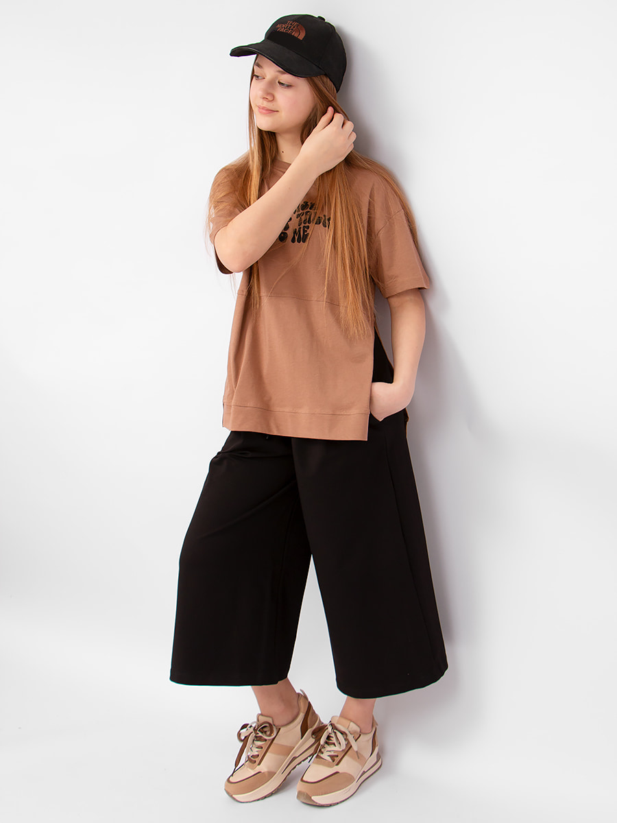 Кюлоты для девочки Соль&Перец в стиле спорт-шик. Однотонные кюлоты на широкой резинке с кулиской и боковыми карманами выполнены из трикотажа - футер 2-х нитка.